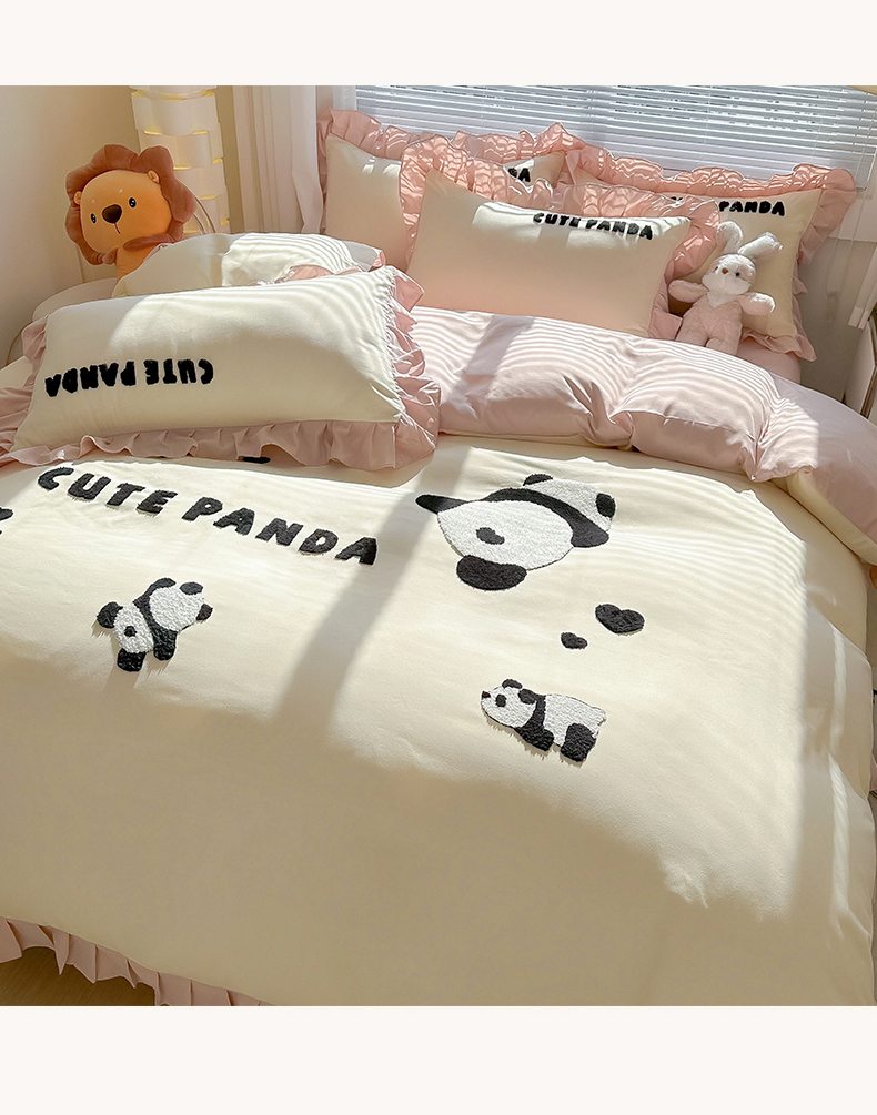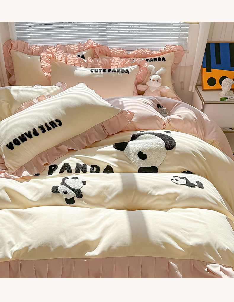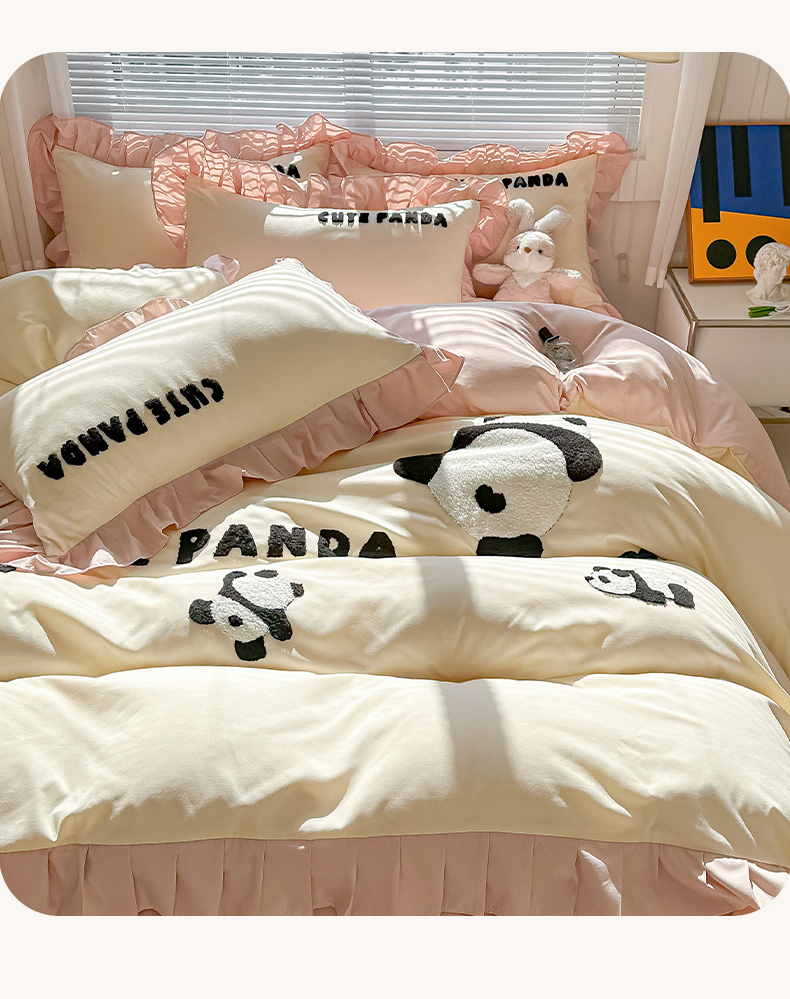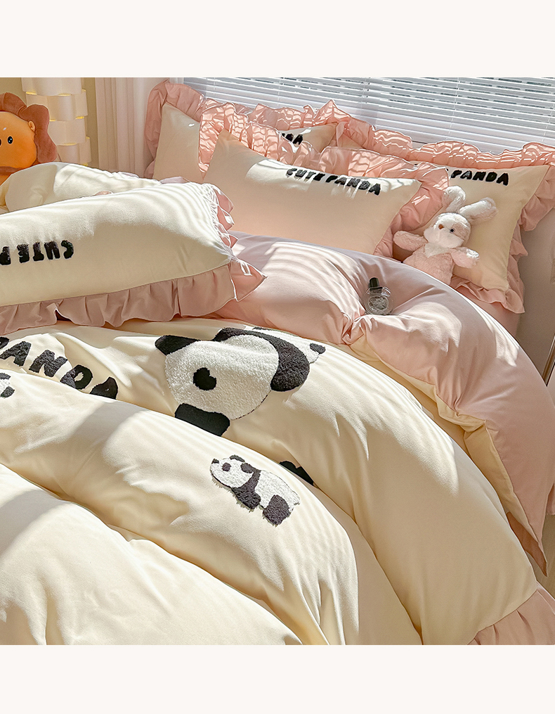 (总)韩都家居 2025新款牛奶绒毛巾绣四件套-系列一,熊猫懒懒,蛋糕猫-粉格,蛋糕猫-兰格,欢乐狗,腊肠狗,圣诞树,小白鸭