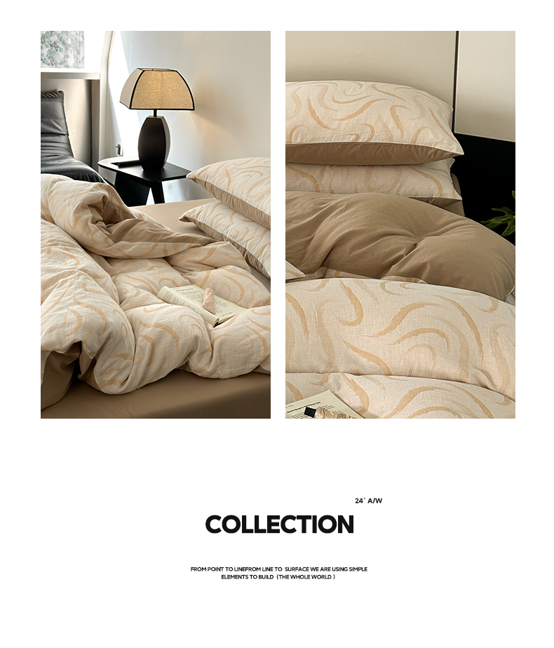 雅居纺家纺 2024新款全棉双层纱色织提花四件套 潮流-卡其