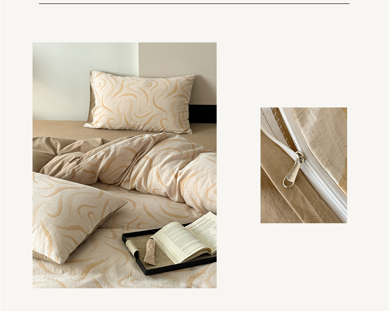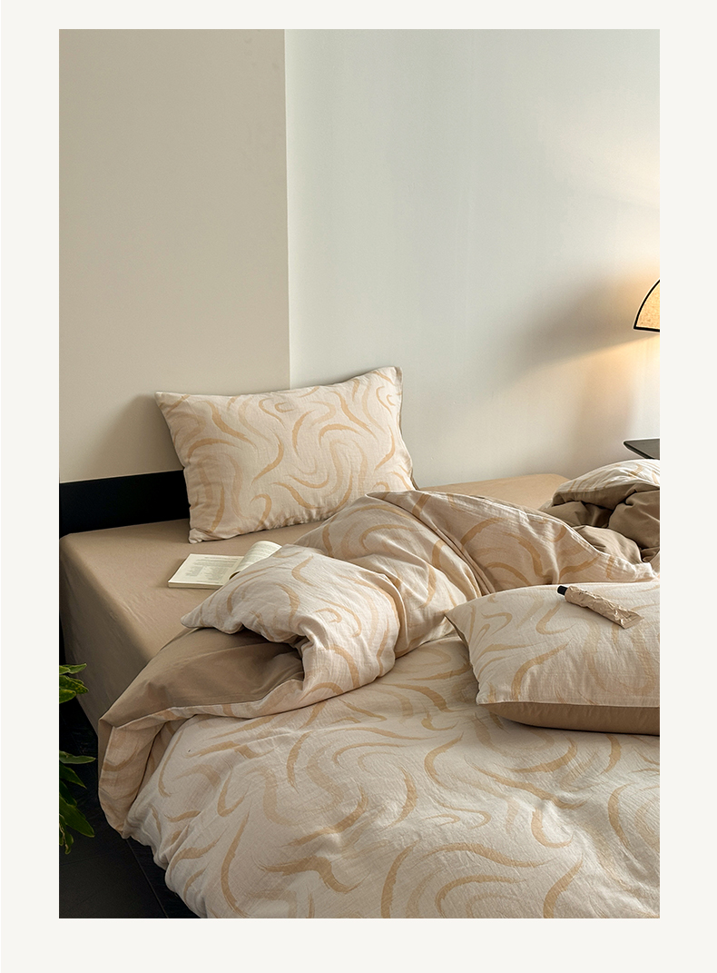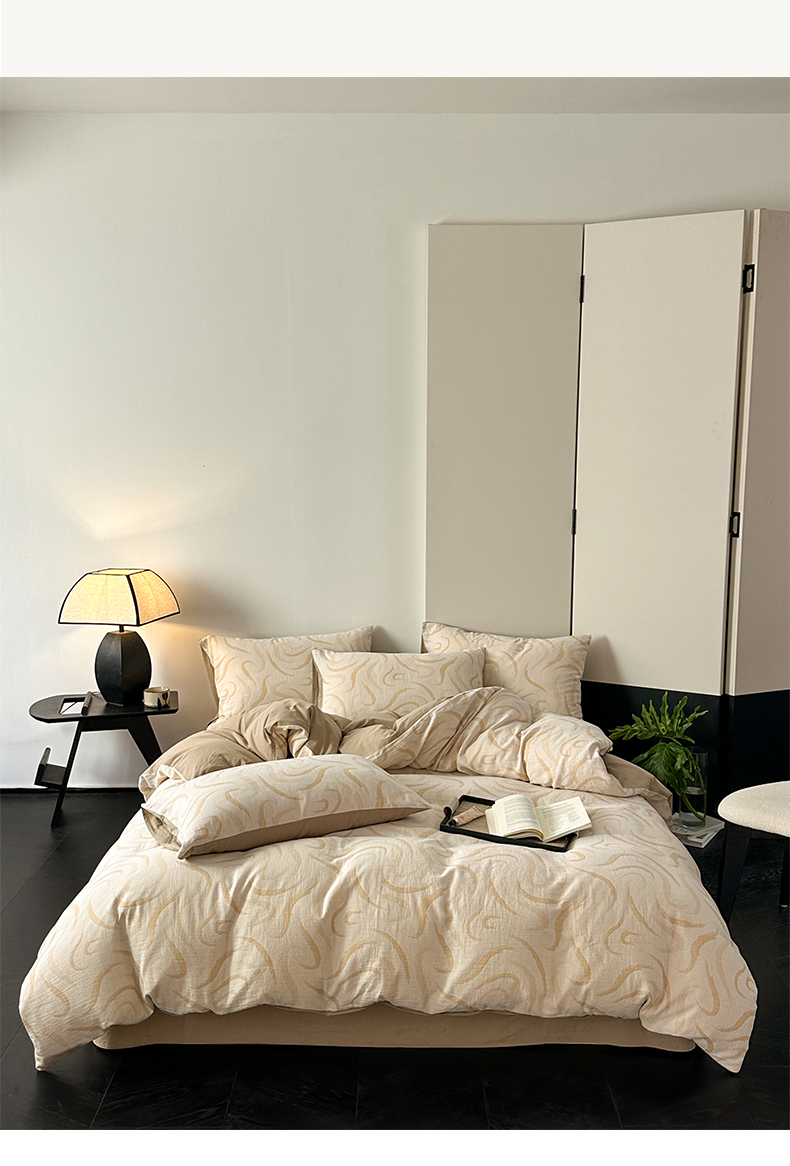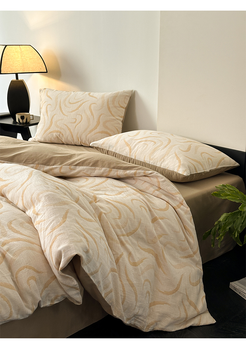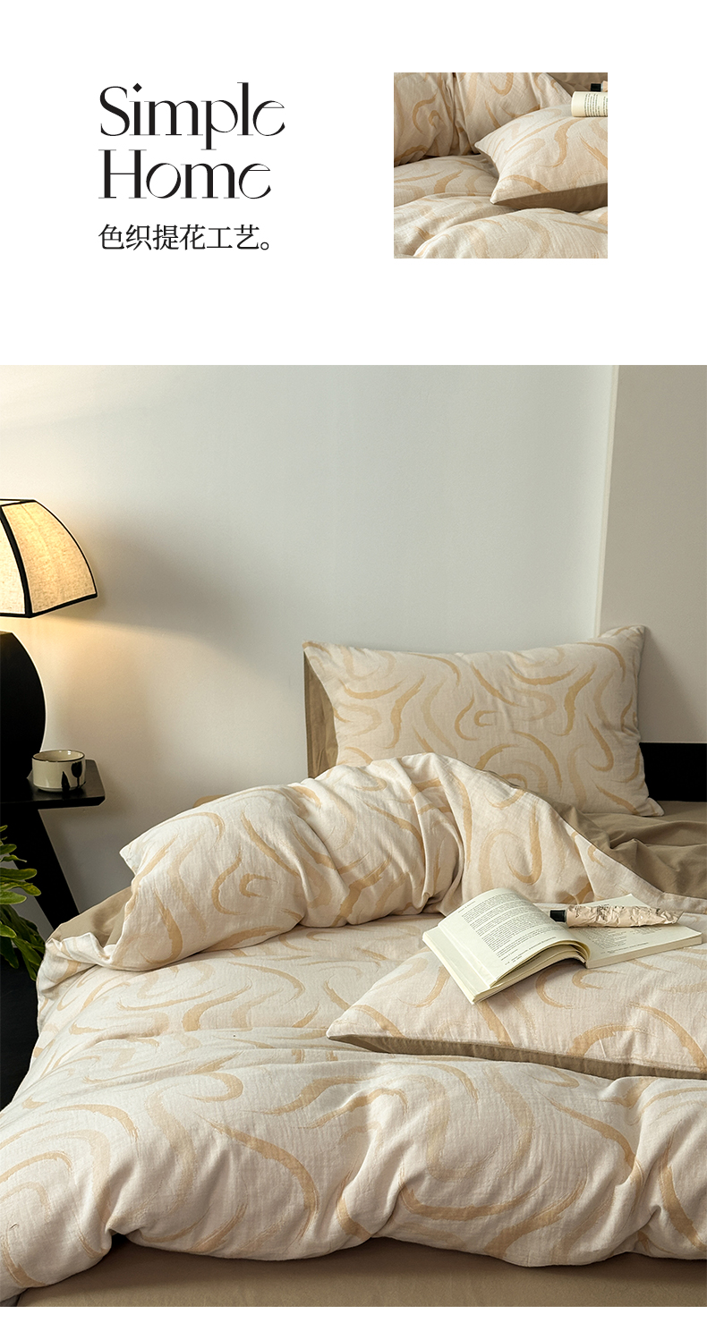 商品名称:雅居纺家纺 2024新款全棉双层纱色织提花四件套 潮流-卡其