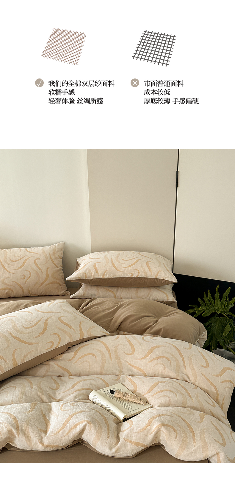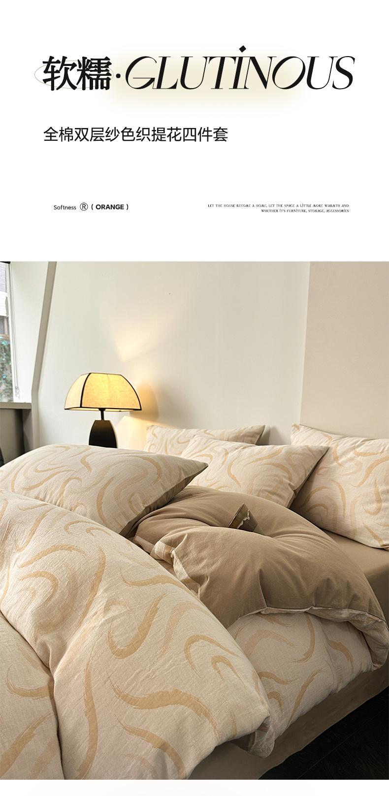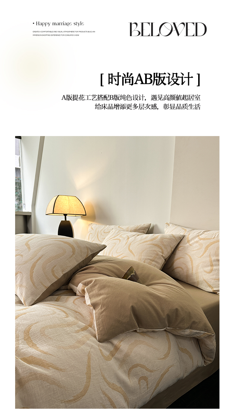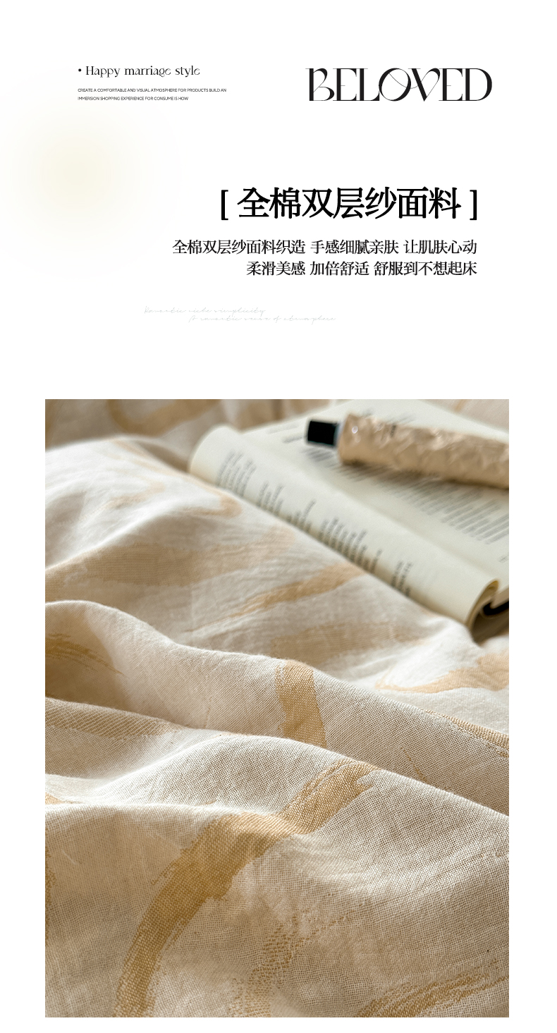商品名称:雅居纺家纺 2024新款全棉双层纱色织提花四件套 潮流-卡其