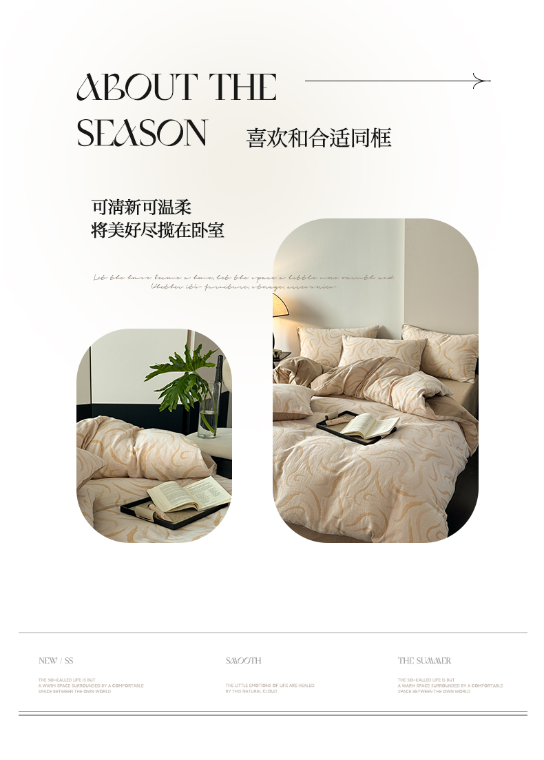 (总)雅居纺家纺 2022新款全棉华夫格普通款四件套,焦糖,米驼,奶油白,柔粉,深灰,雾蓝,月灰