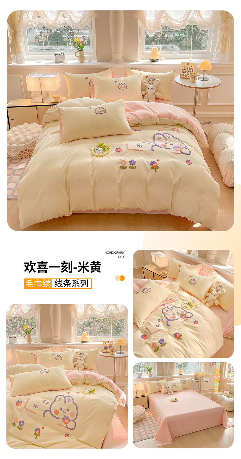 当前位置: 91家纺网 > 商品网购 > 床品套件 > 四件套 > 全棉普通四件套 > 我心家纺 2024新款毛巾绣-线条系列四件套 欢喜一刻-米黄