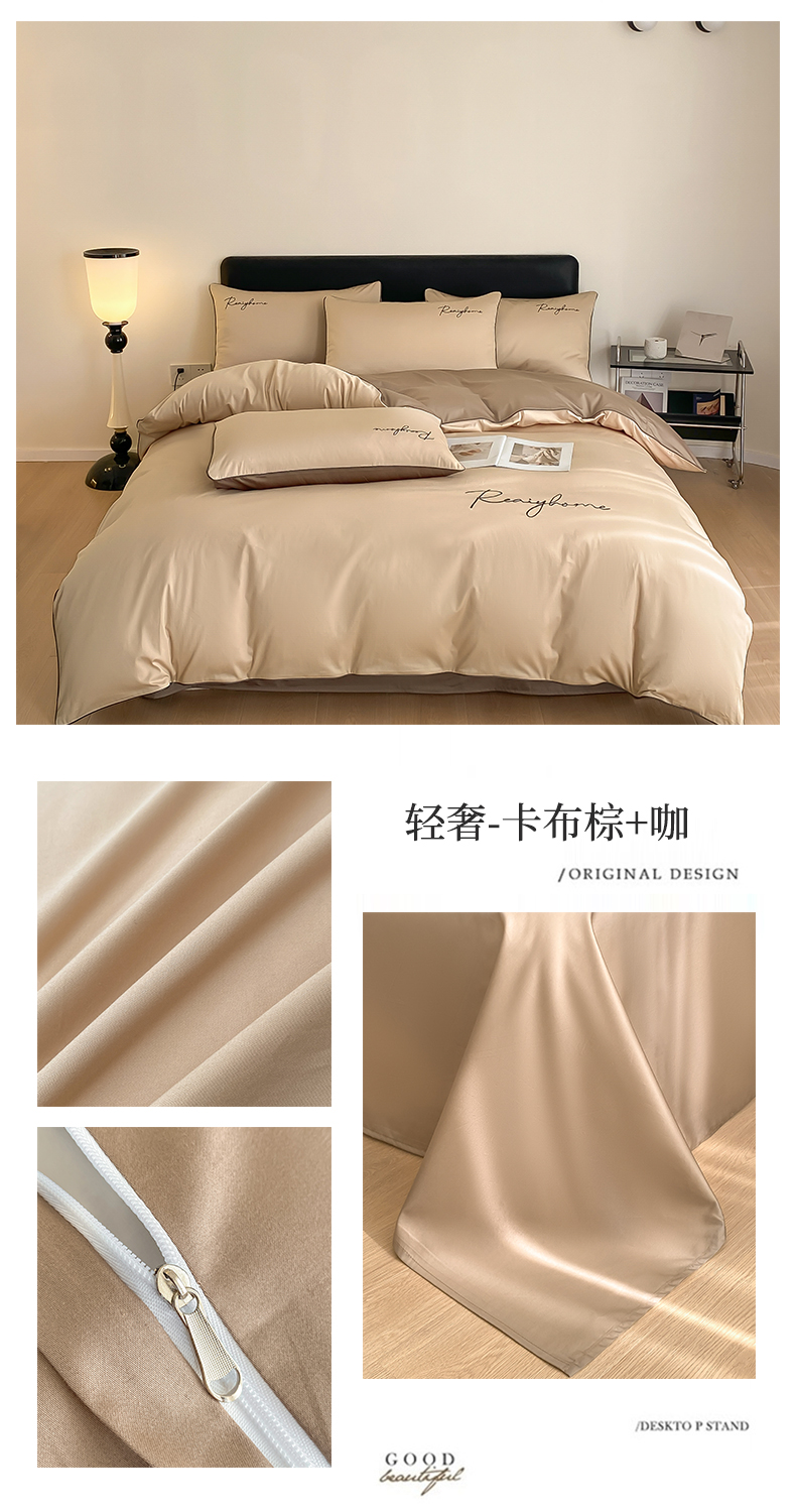 • 91家纺网 家纺一手货源 找家纺 慕色家纺 2024新款全棉刺绣轻奢系列单被套 轻奢-卡布棕+咖