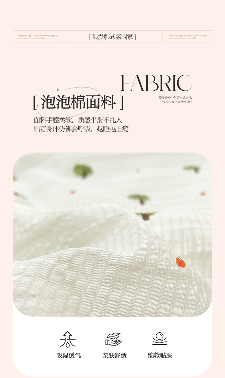 商品名称:恒爱家纺 2024新款韩版泡泡棉床盖系列四件套 热带雨林