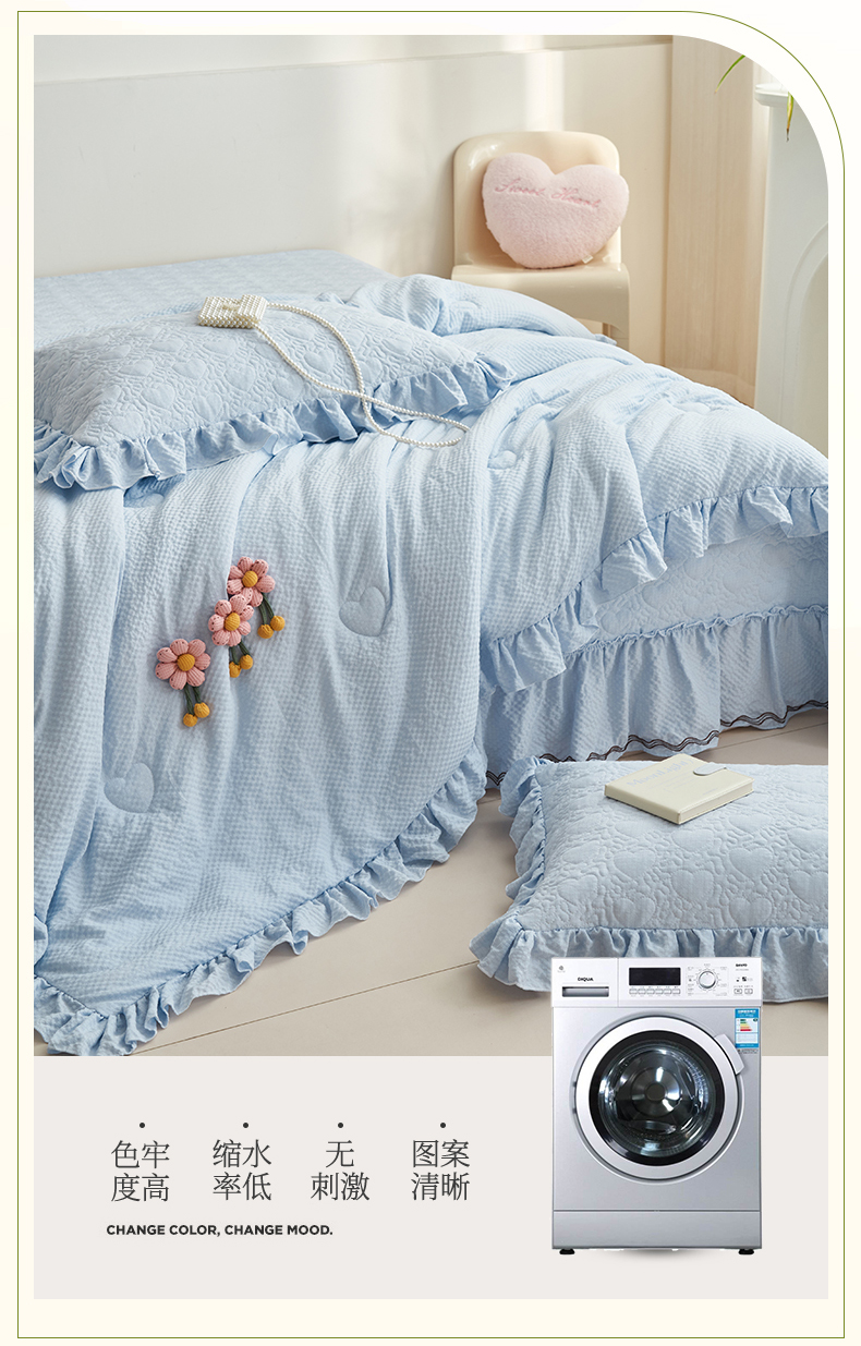 商品名称:恒爱 2024新款泡泡公主床盖款夏被四件套 泡泡公主-天空蓝