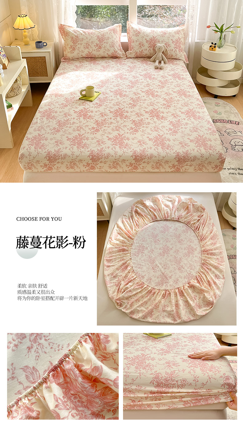 商品名称:绵庭家纺 2024新款AB版12868全棉印花单床笠 藤蔓花影-粉