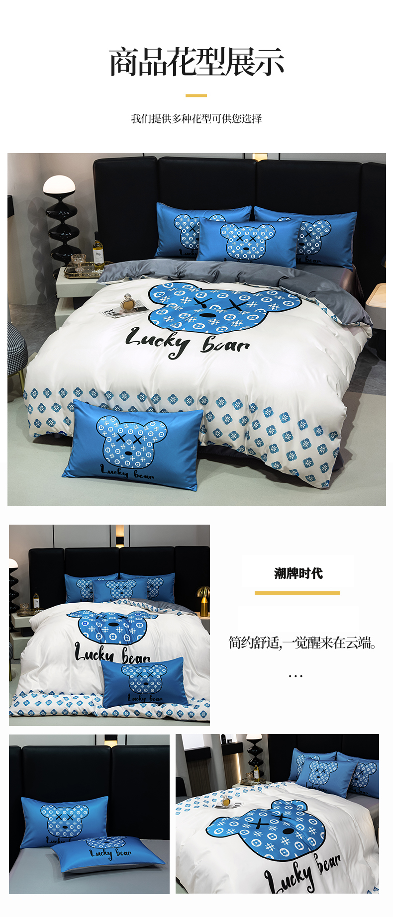 当前位置: 91家纺网 > 商品网购 > 床品套件 > 四件套 > 水洗真丝四件套 > 色鬼布艺 2024新款大牌风进口双面冰丝四件套水洗真丝四件套直播爆款暴力熊 潮牌时代
