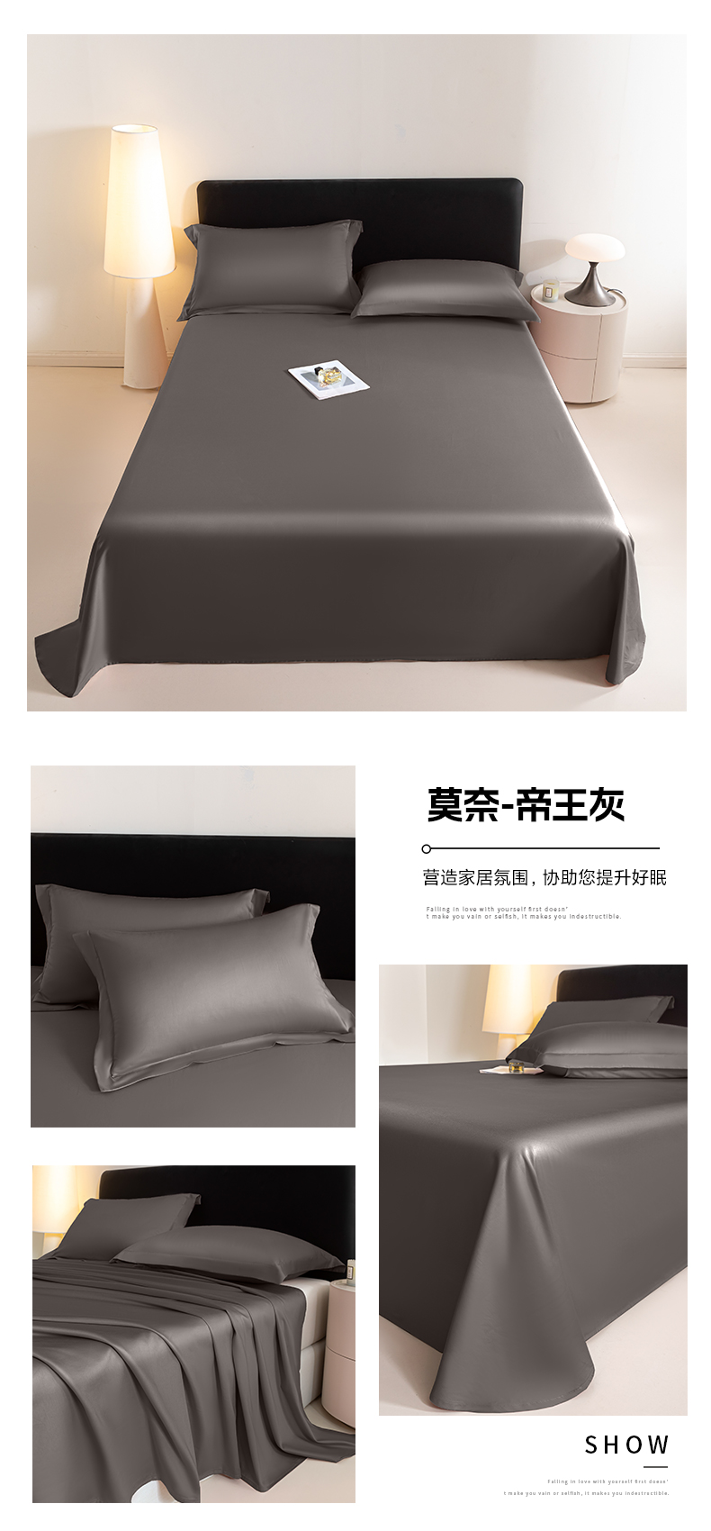 • 91家纺网 家纺一手货源 找家纺 秀色家纺 2025新款高端新疆长绒棉床单单件纯棉50支贡缎全棉床单双人贡缎加厚被单三件套 莫奈-帝王灰