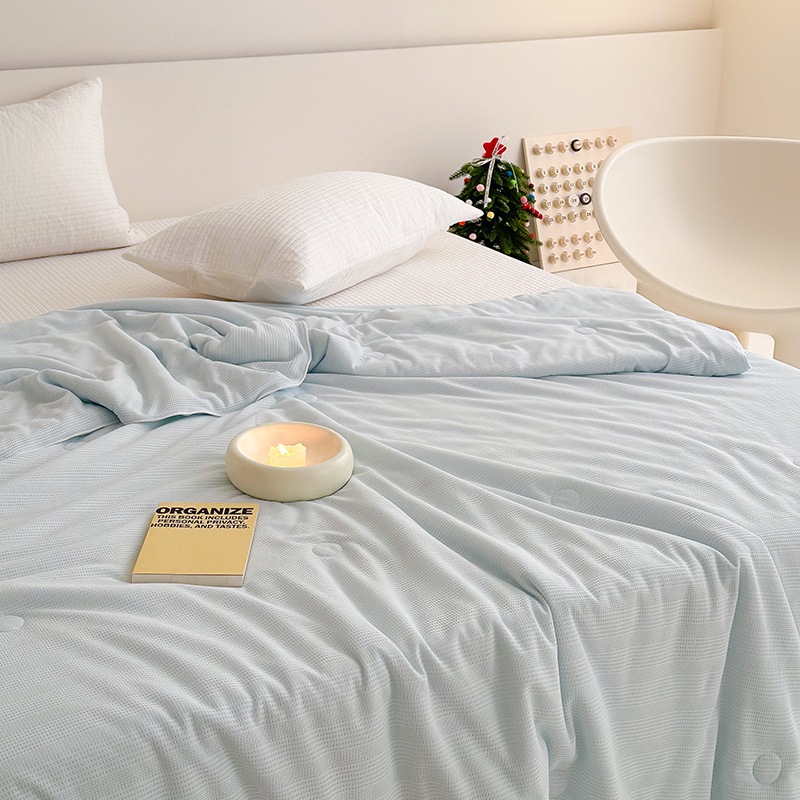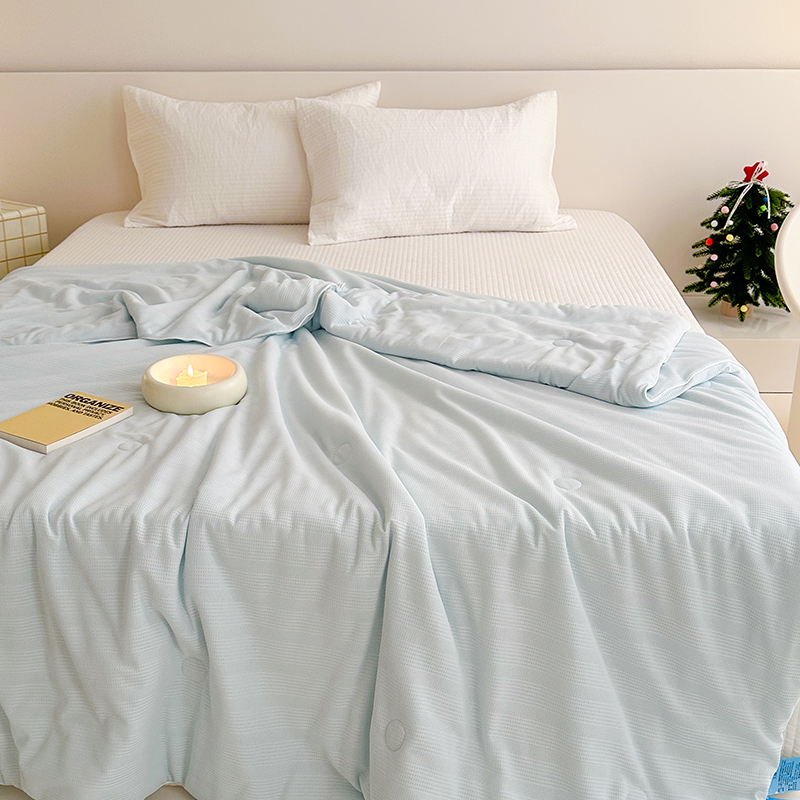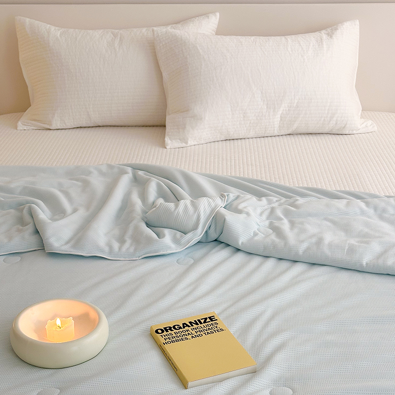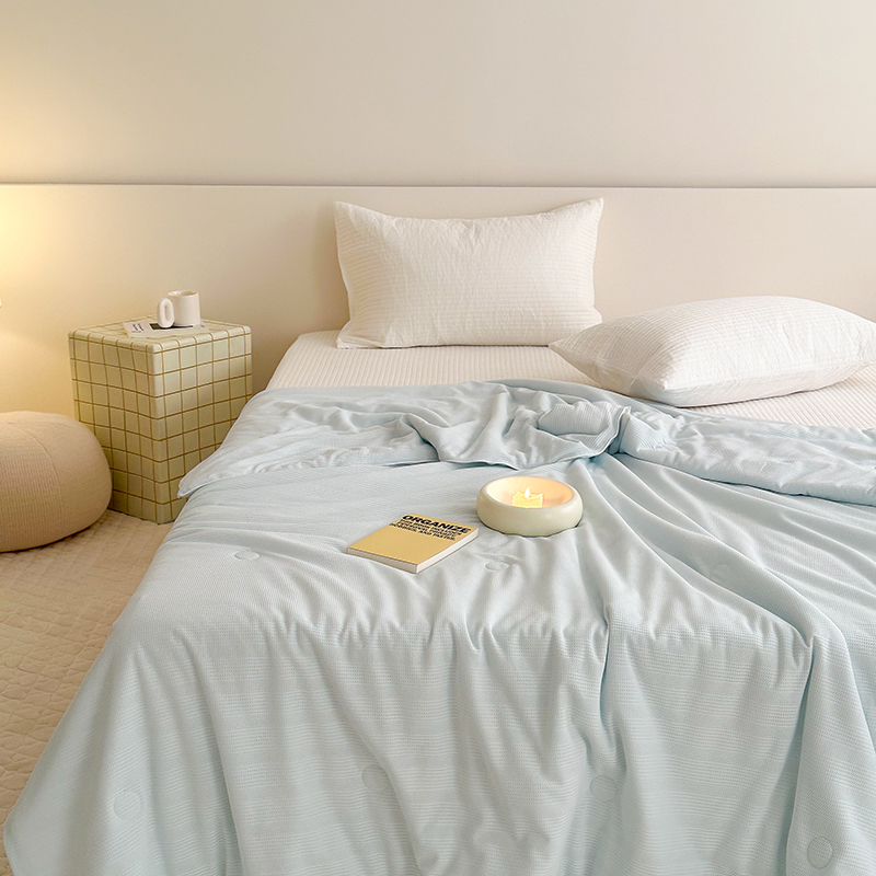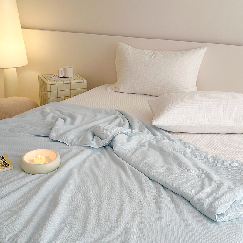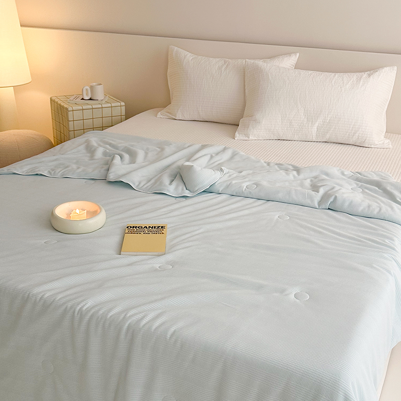 (总)珺柔家纺 2023新款针织华夫格夏被,白色,粉玉,金色,浅咖,水绿,雾霾蓝