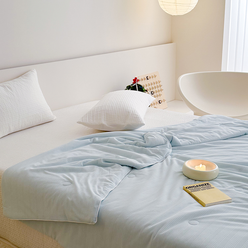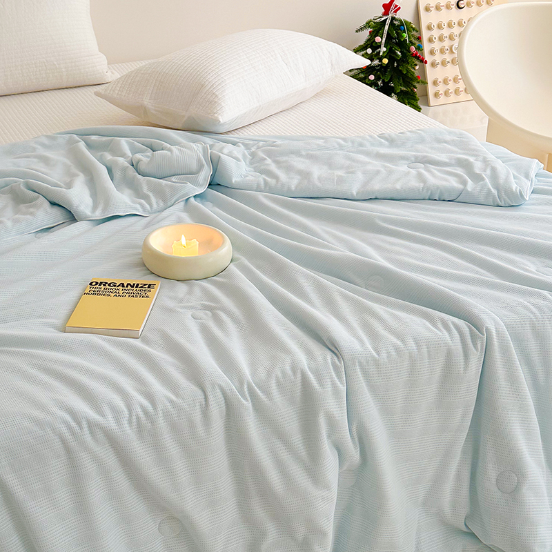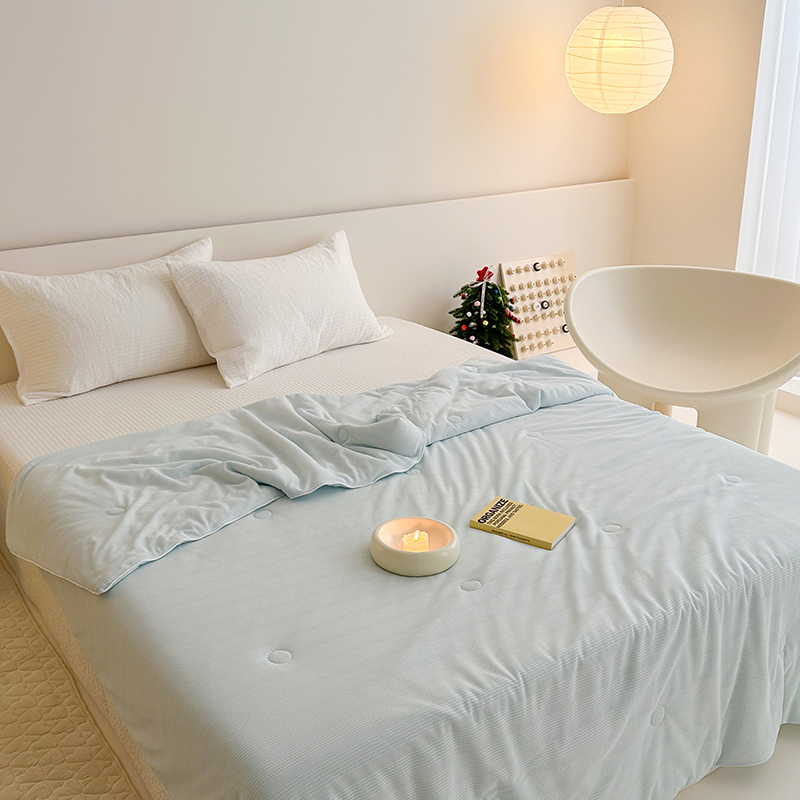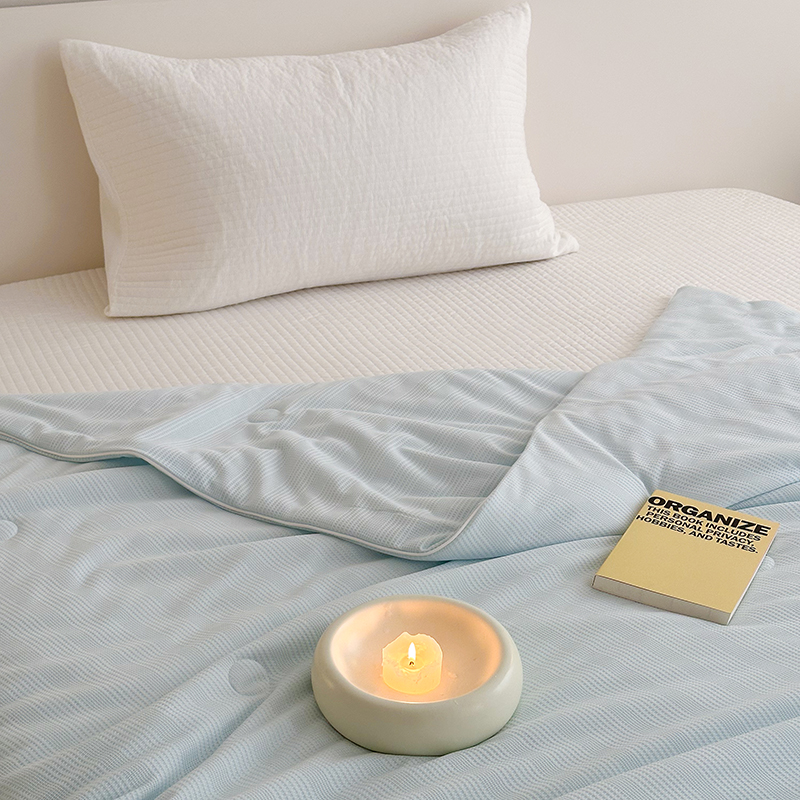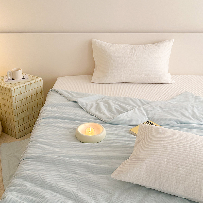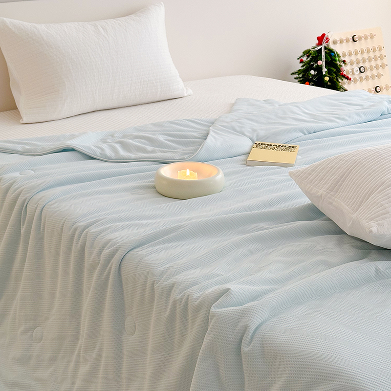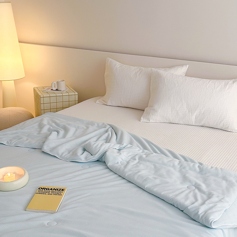 (总)珺柔家纺 2023新款针织华夫格夏被,白色,粉玉,金色,浅咖,水绿,雾霾蓝