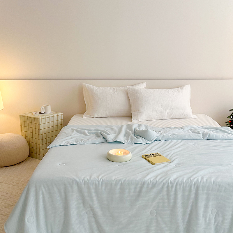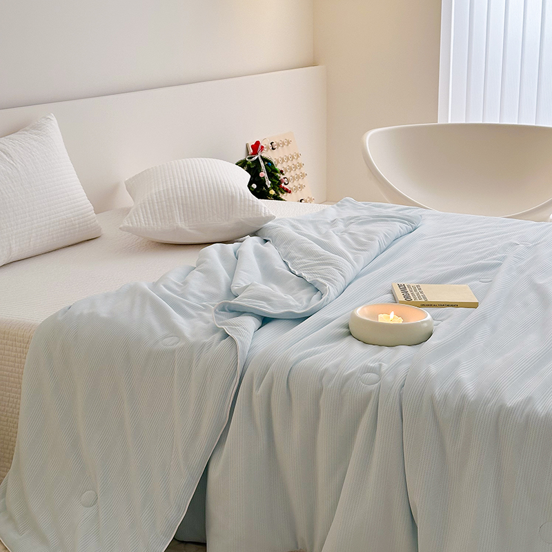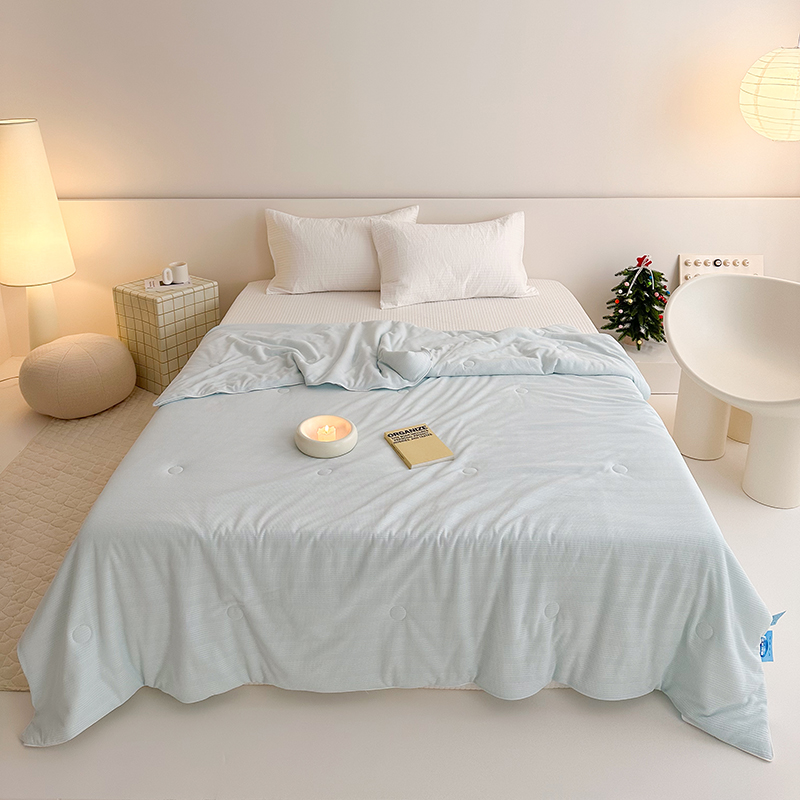 (总)珺柔 2023新款凉感丝纯色夏被--嵌绳系列,金黄,深蓝,水绿,天蓝