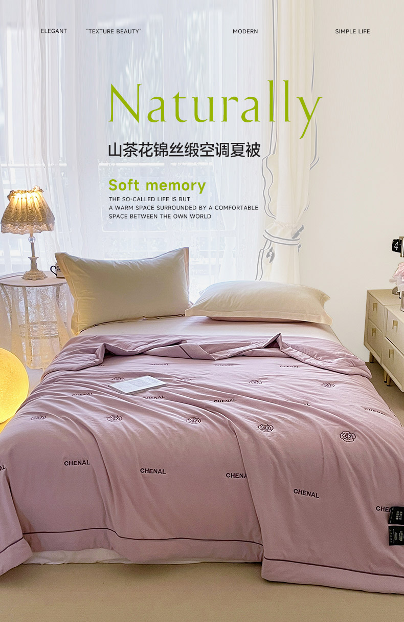 (总)被靠被2024新款锦丝缎空调夏被-山茶花,甘蓝绿,岚烟黄,青岩灰,水晶紫,温柔粉,逐梦蓝