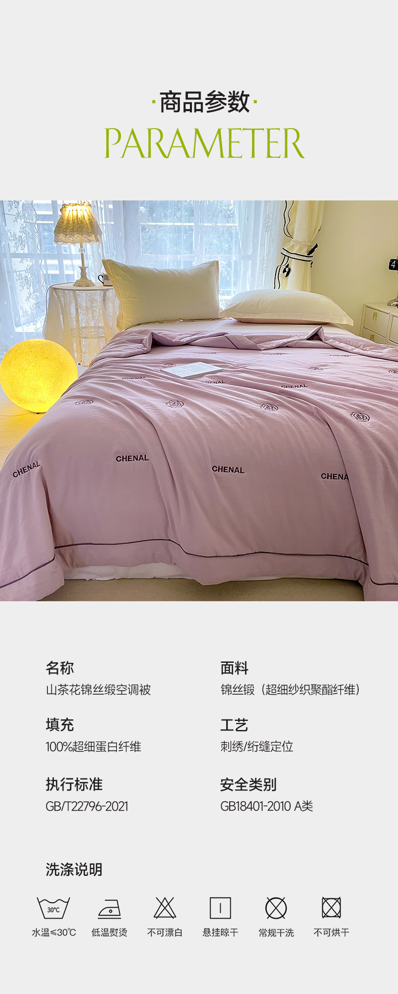 商品名称:被靠被2024新款锦丝缎空调夏被-山茶花 水晶紫