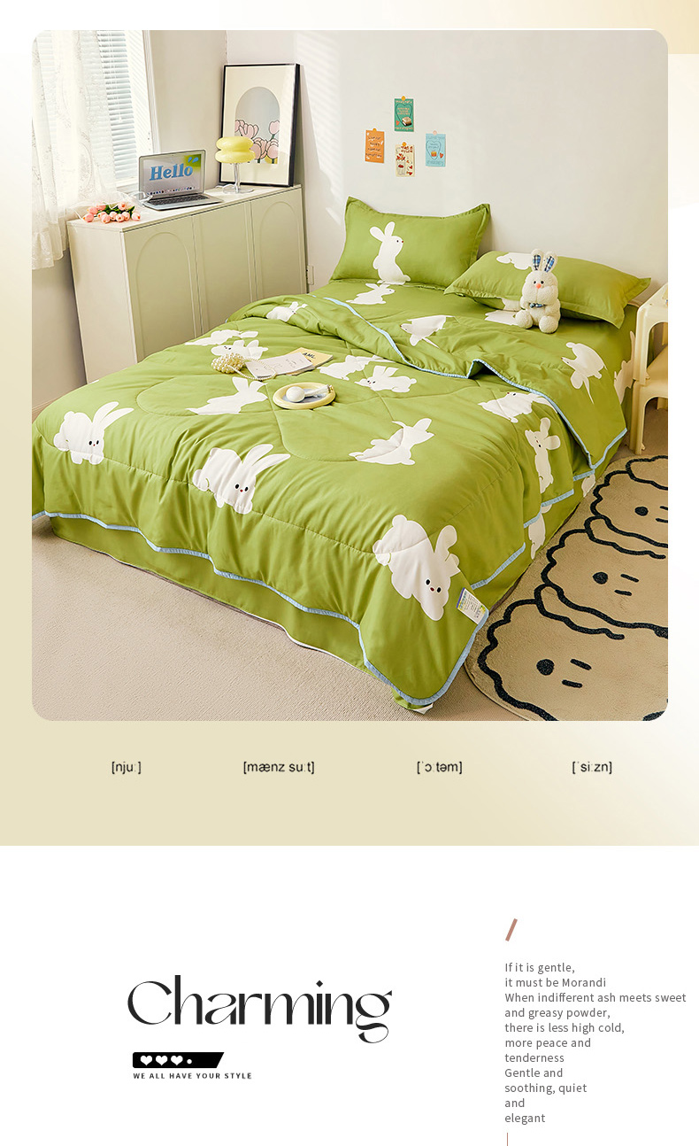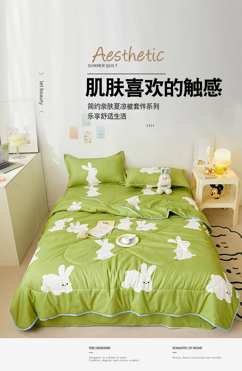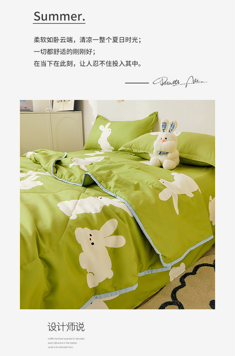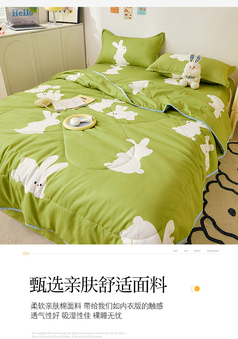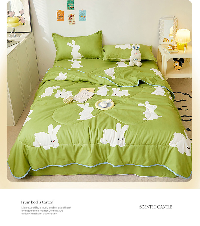 • 91家纺网 家纺一手货源 找家纺 卡斯诺家纺馆 2025新款芦荟棉亲肤印花夏被(下载包包含买家秀) 萌小兔