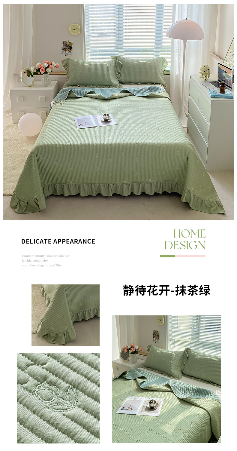 商品名称:胜权家纺 2024新款A类60S天丝夹棉绣花床盖三件套 静待花开--抹茶绿