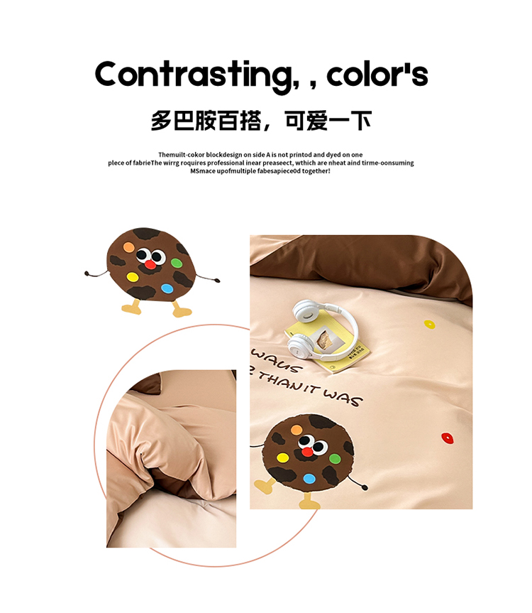 商品名称:色鬼布艺 2024新款水洗真丝数码印花四件套 趣多多