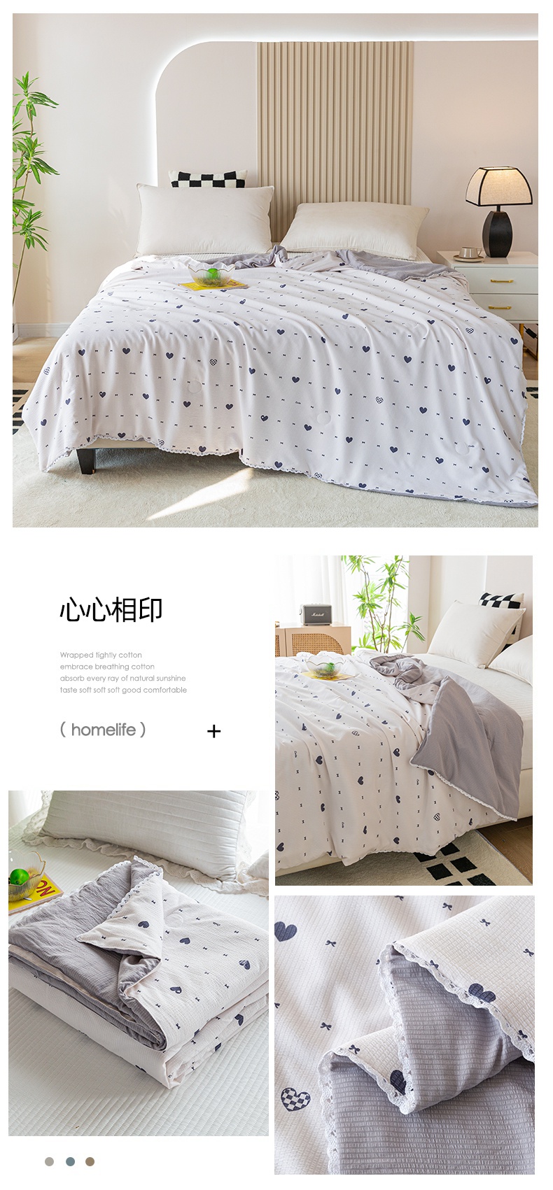 帕芬鸟家纺 2024新款105克有氧泡泡棉大豆夏被 心心相印