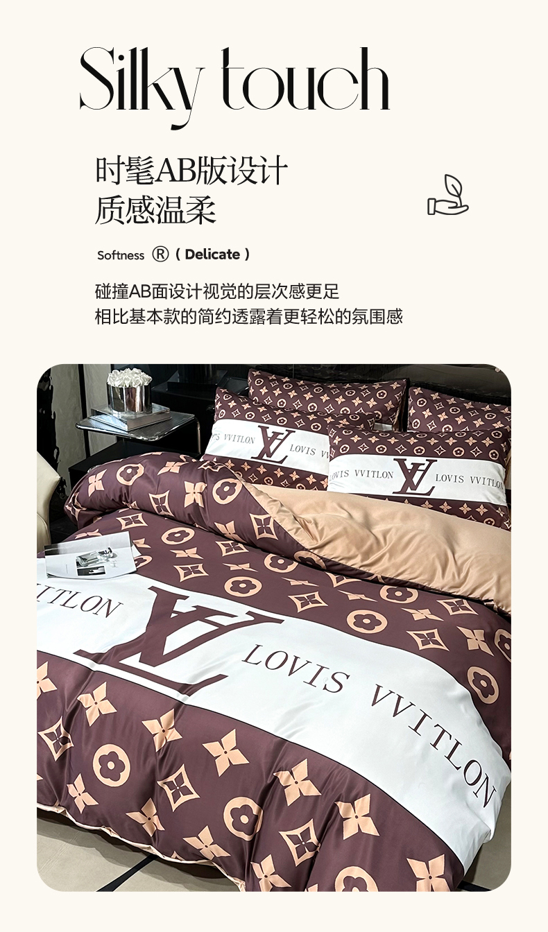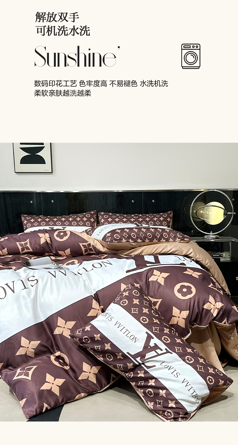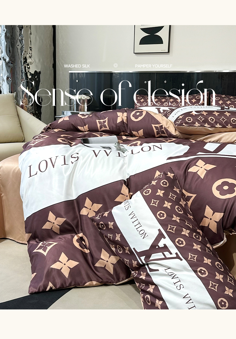 色鬼布艺 2024新款水洗真丝轻奢系列数码印花四件套 经典V