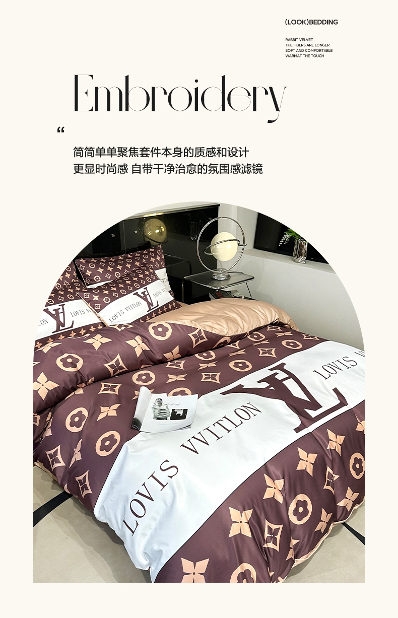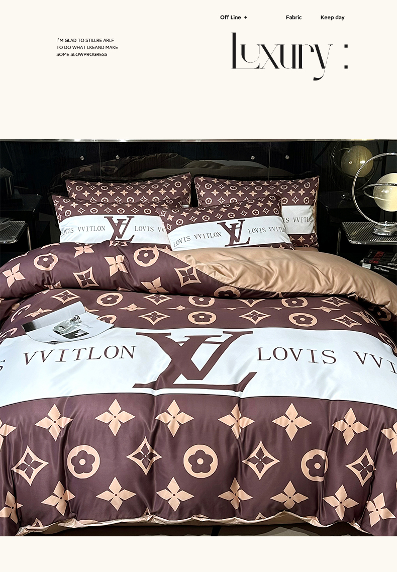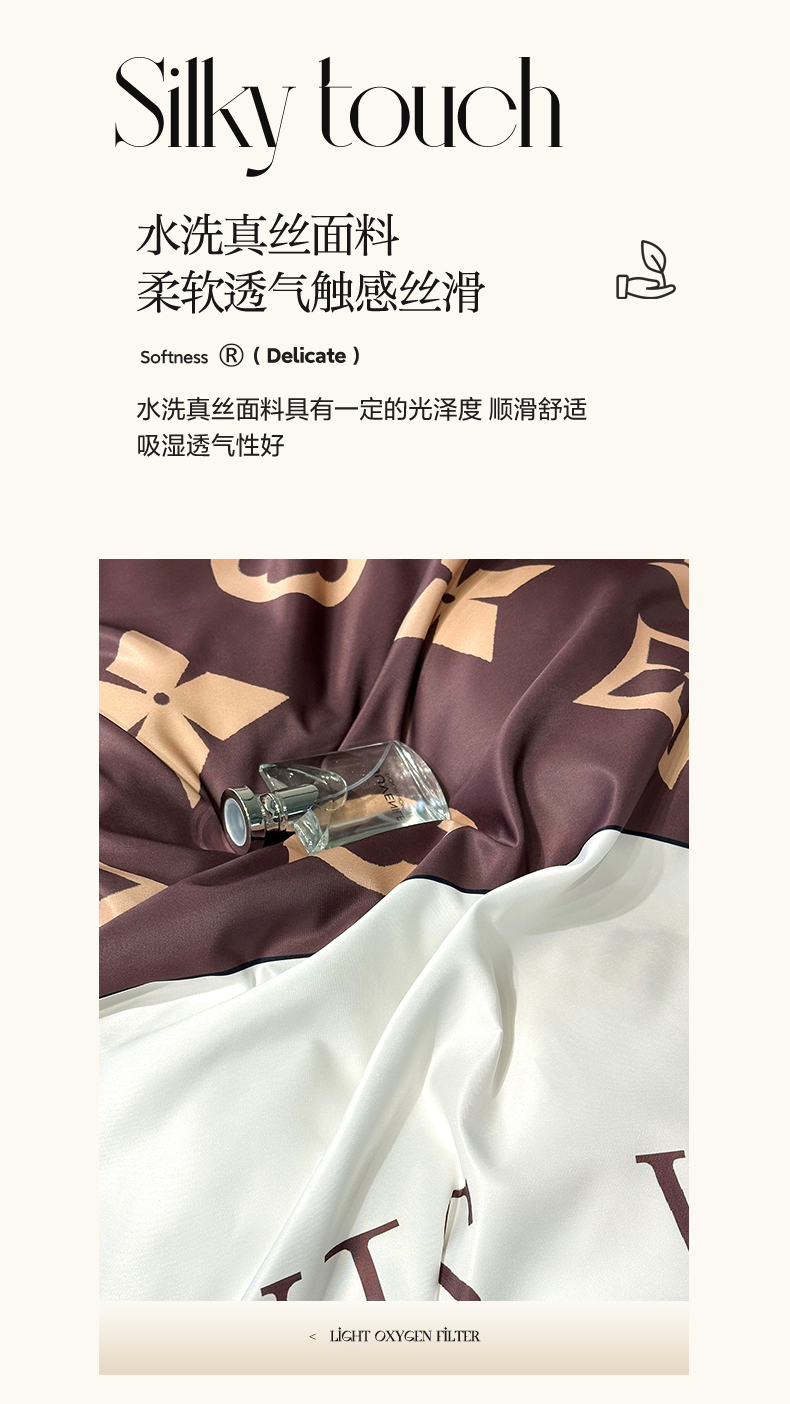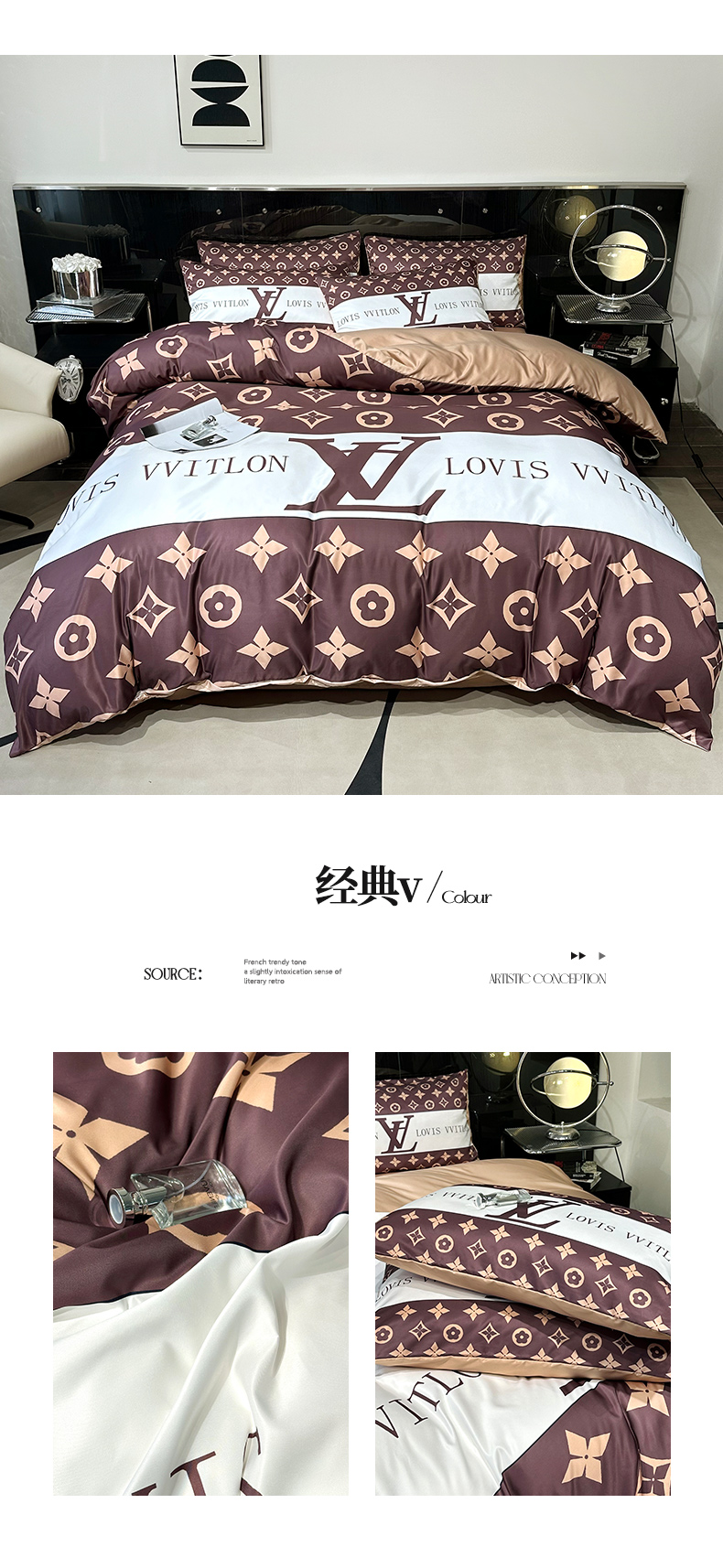 色鬼布艺 2024新款水洗真丝轻奢系列数码印花四件套 经典V