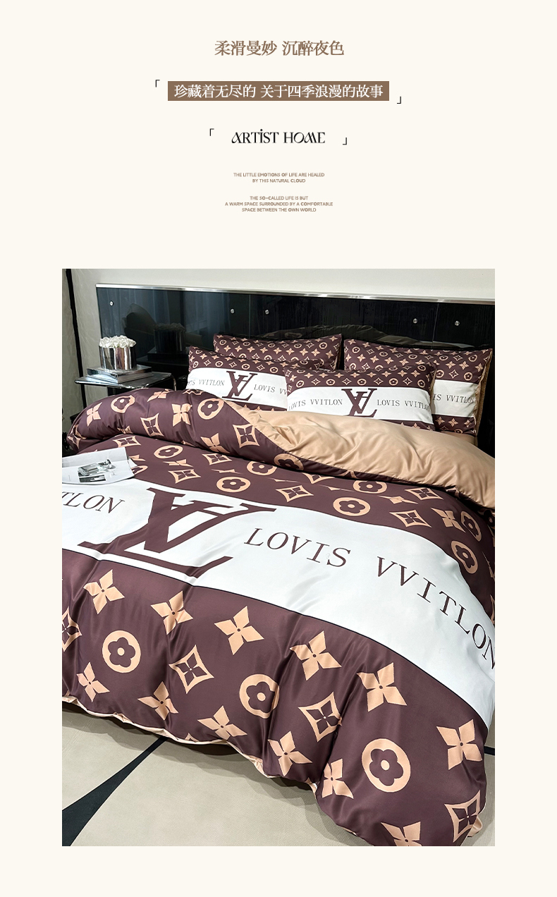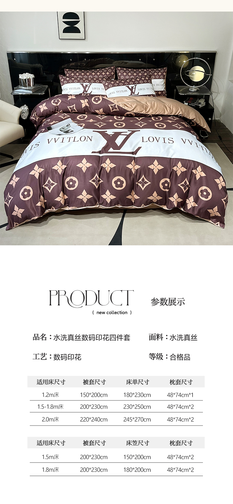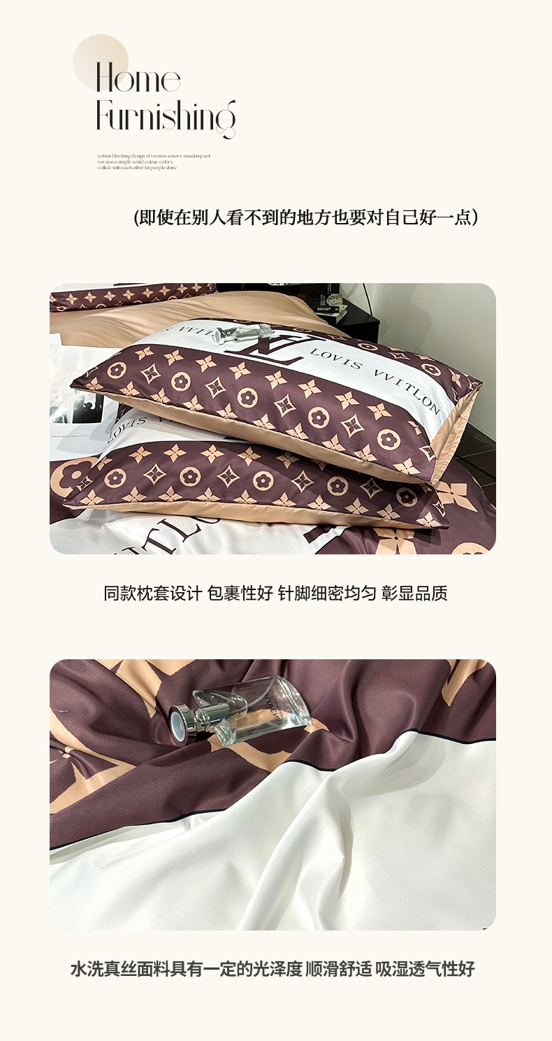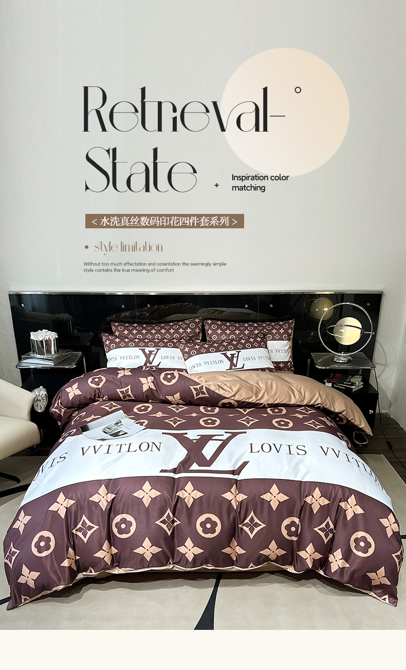 商品名称:色鬼布艺 2024新款水洗真丝轻奢系列数码印花四件套 经典V