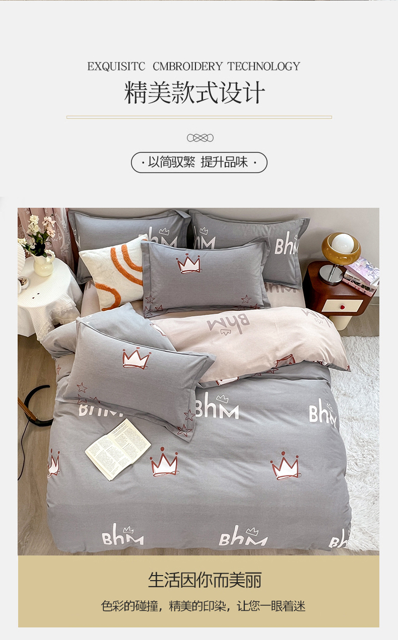 当前位置: 91家纺网 > 商品网购 > 床品套件 > 四件套 > 简约 2025新款全棉四件套活性生态磨毛四件套 小皇冠-米灰