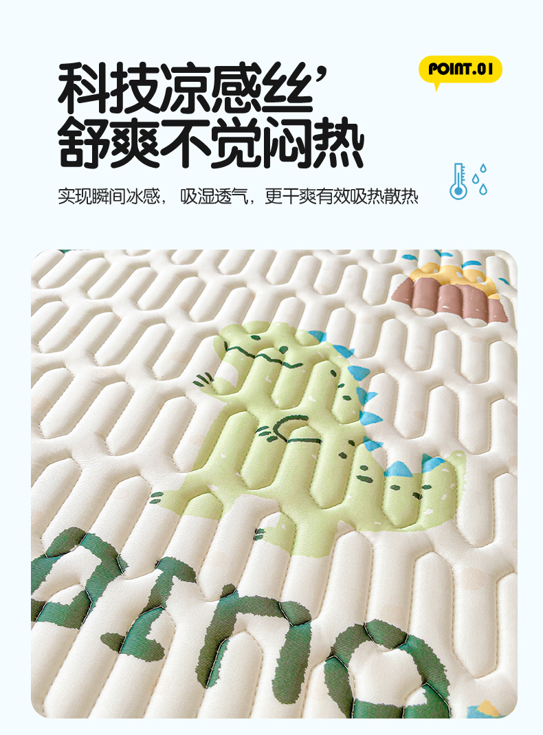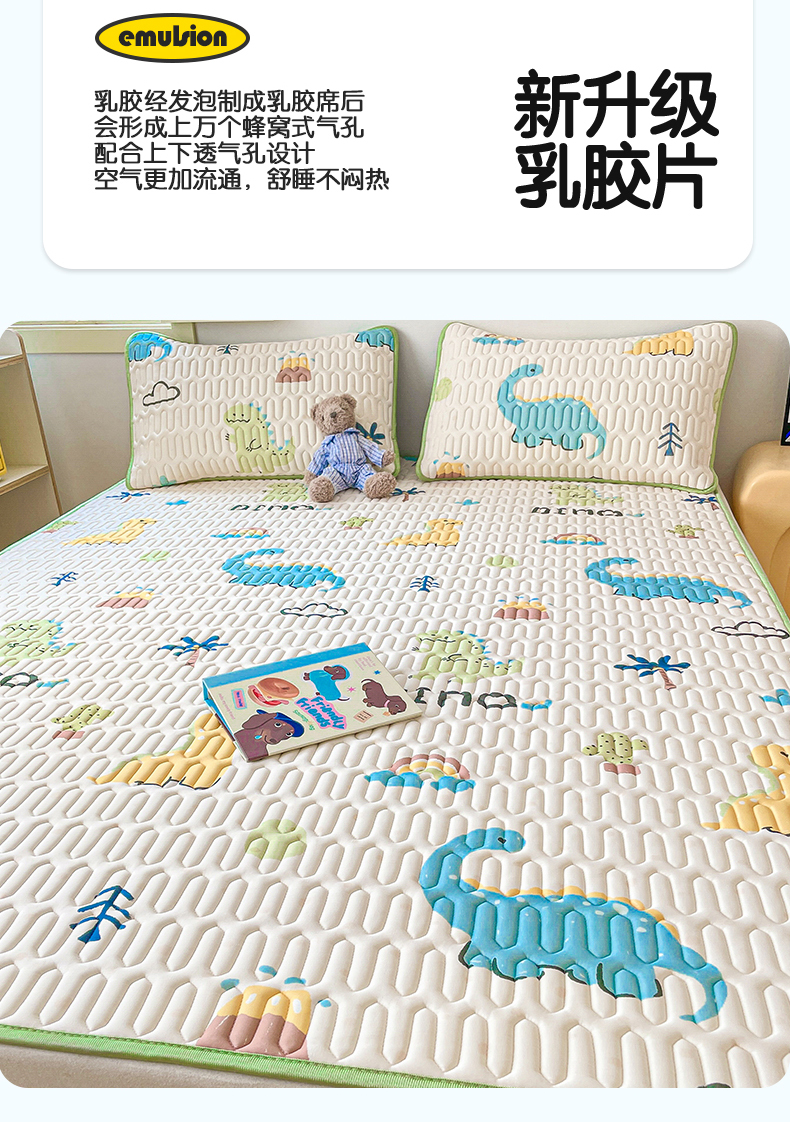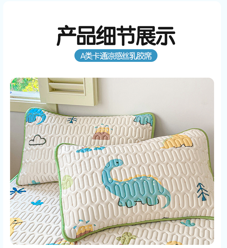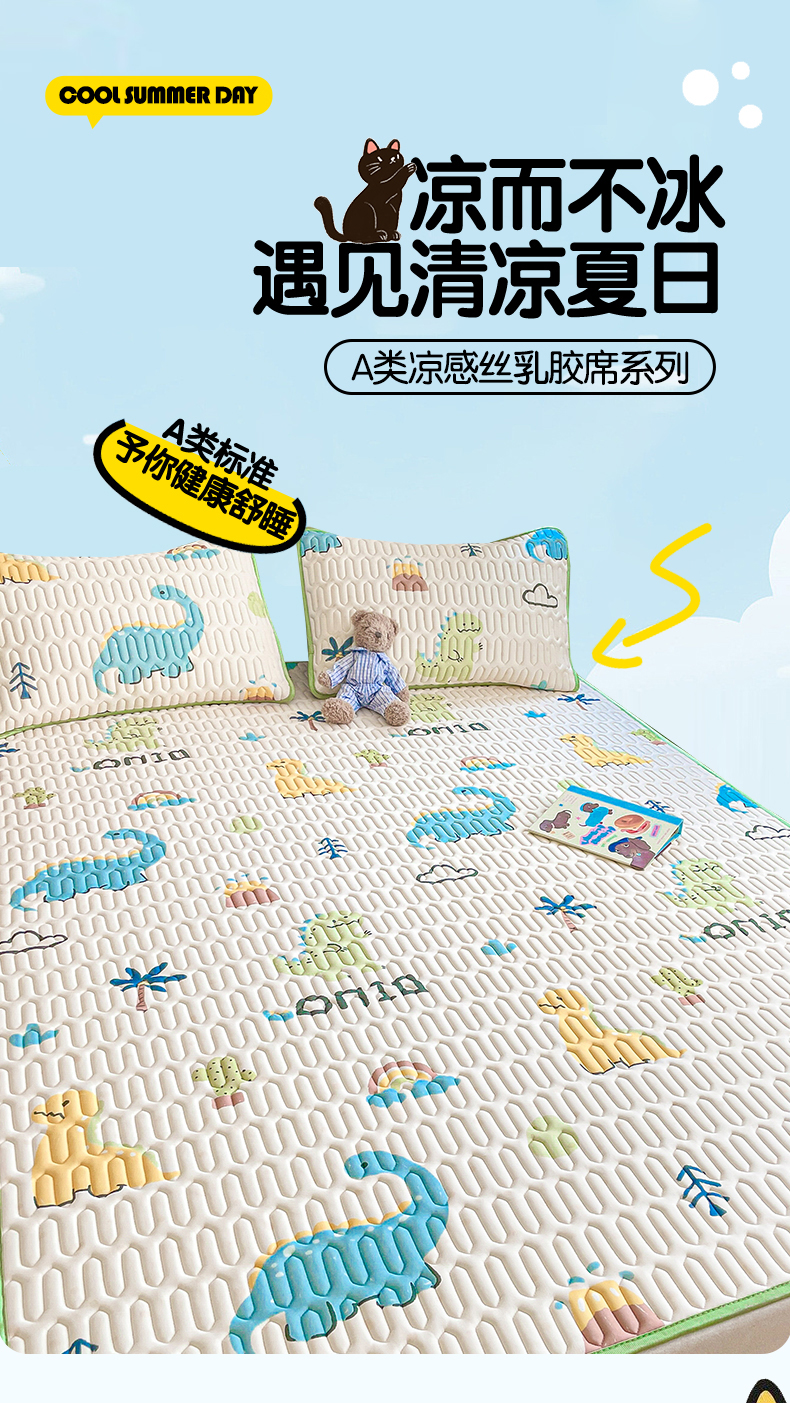 商品名称:布卢姆床垫 2025新款A类凉感丝数码印花小版乳胶凉席5mm 恐龙世界