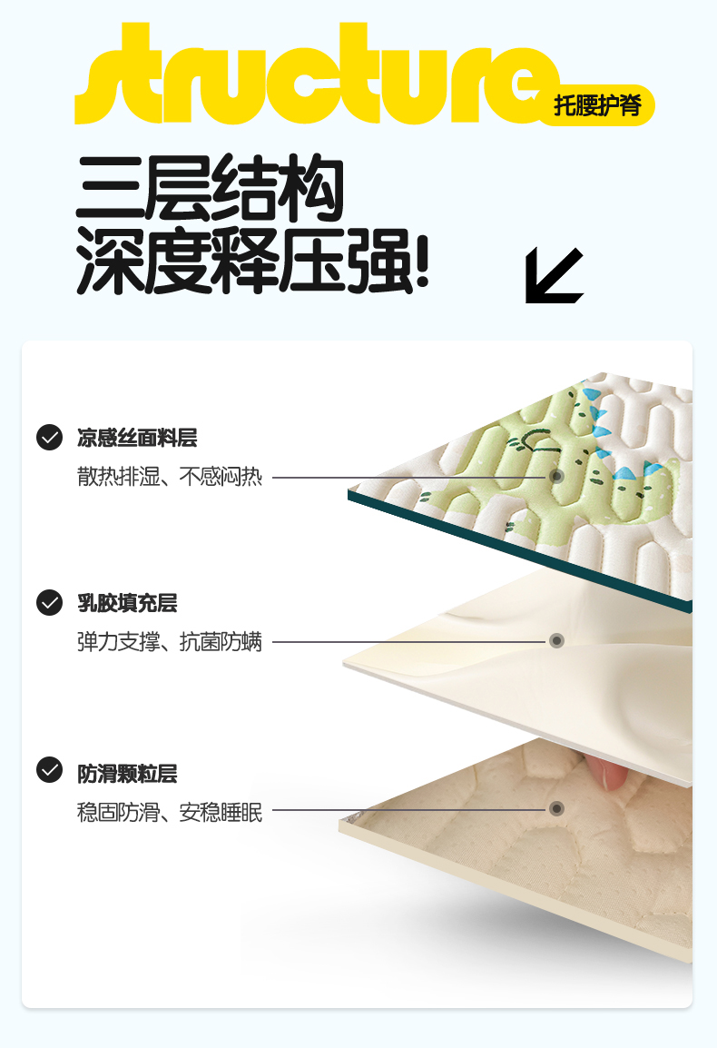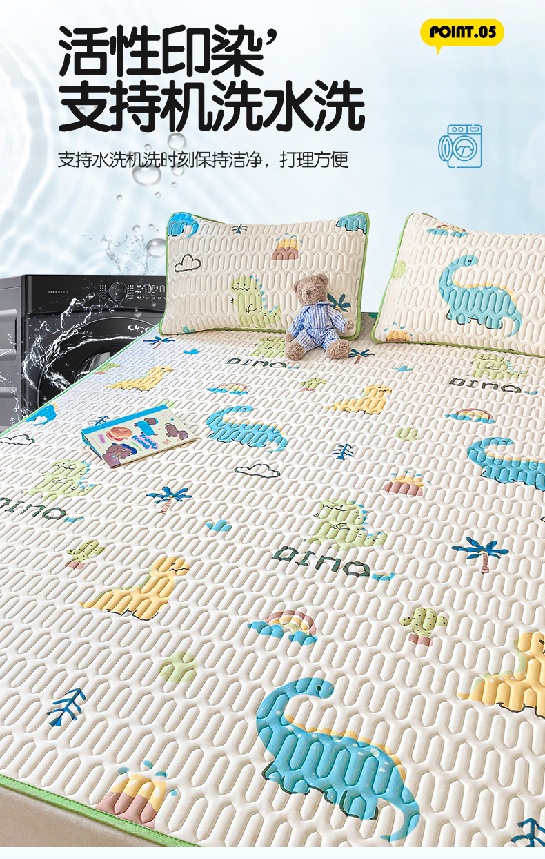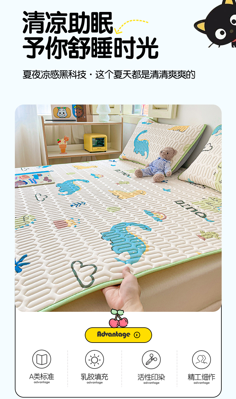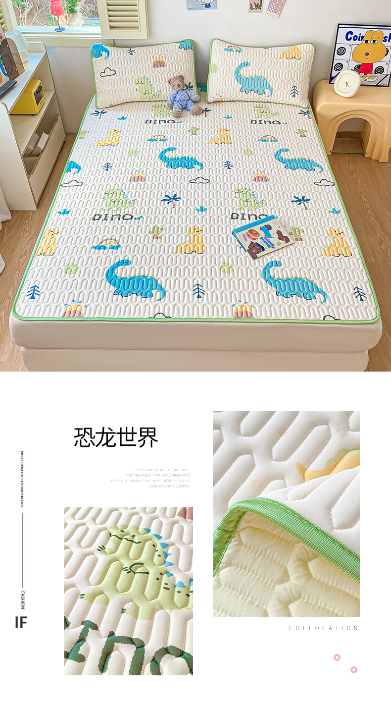 商品名称:布卢姆床垫 2025新款A类凉感丝数码印花小版乳胶凉席5mm 恐龙世界