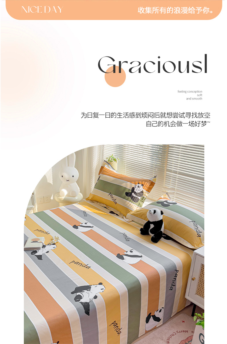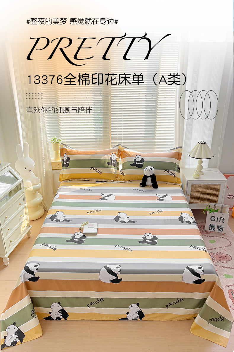 大柏树 2025新款全棉13376印花四件套系列(可定制)-单床单 功夫熊