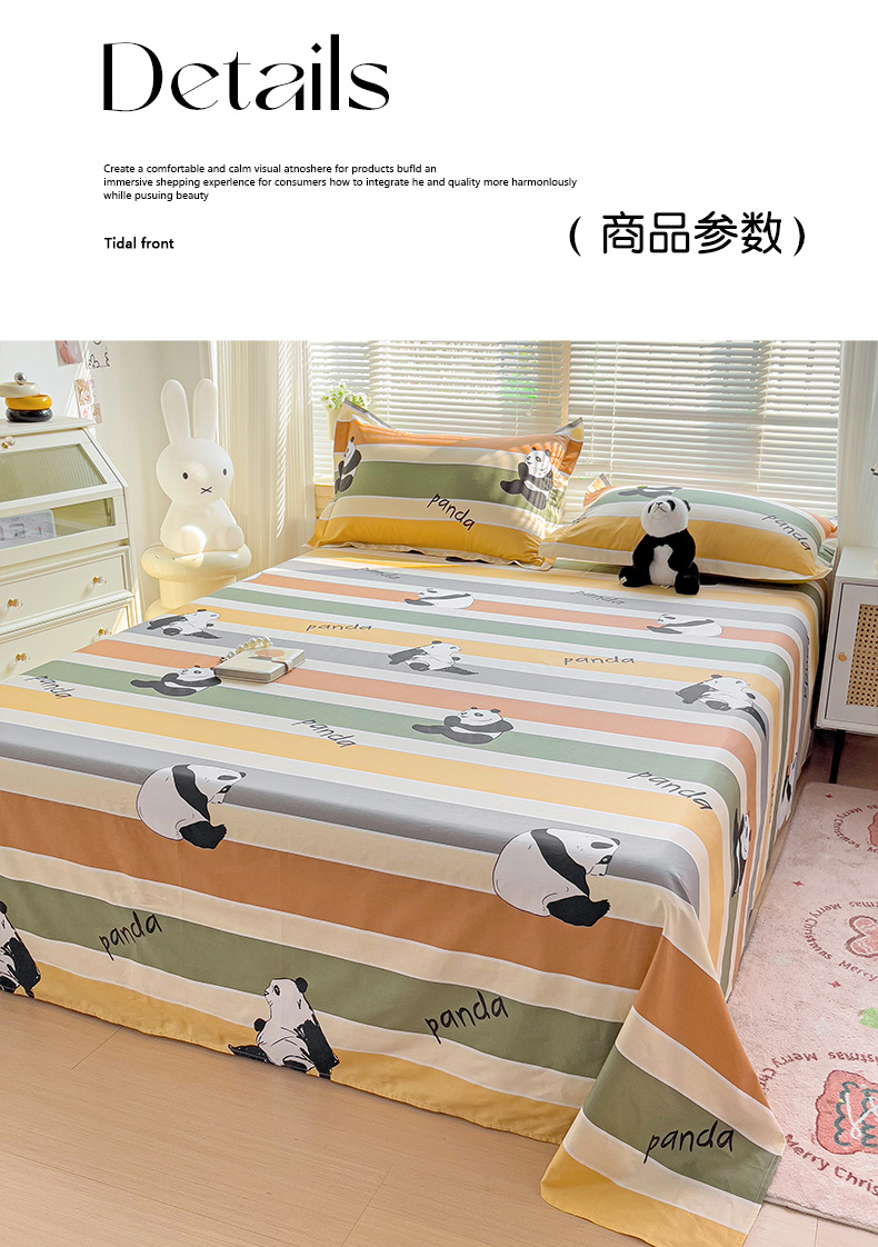 商品名称:大柏树 2025新款全棉13376印花四件套系列(可定制)-单床单 功夫熊