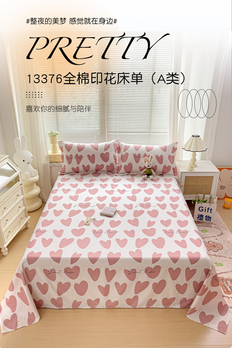 大柏树 2025新款全棉13376印花四件套系列(可定制)-单床单 倾心