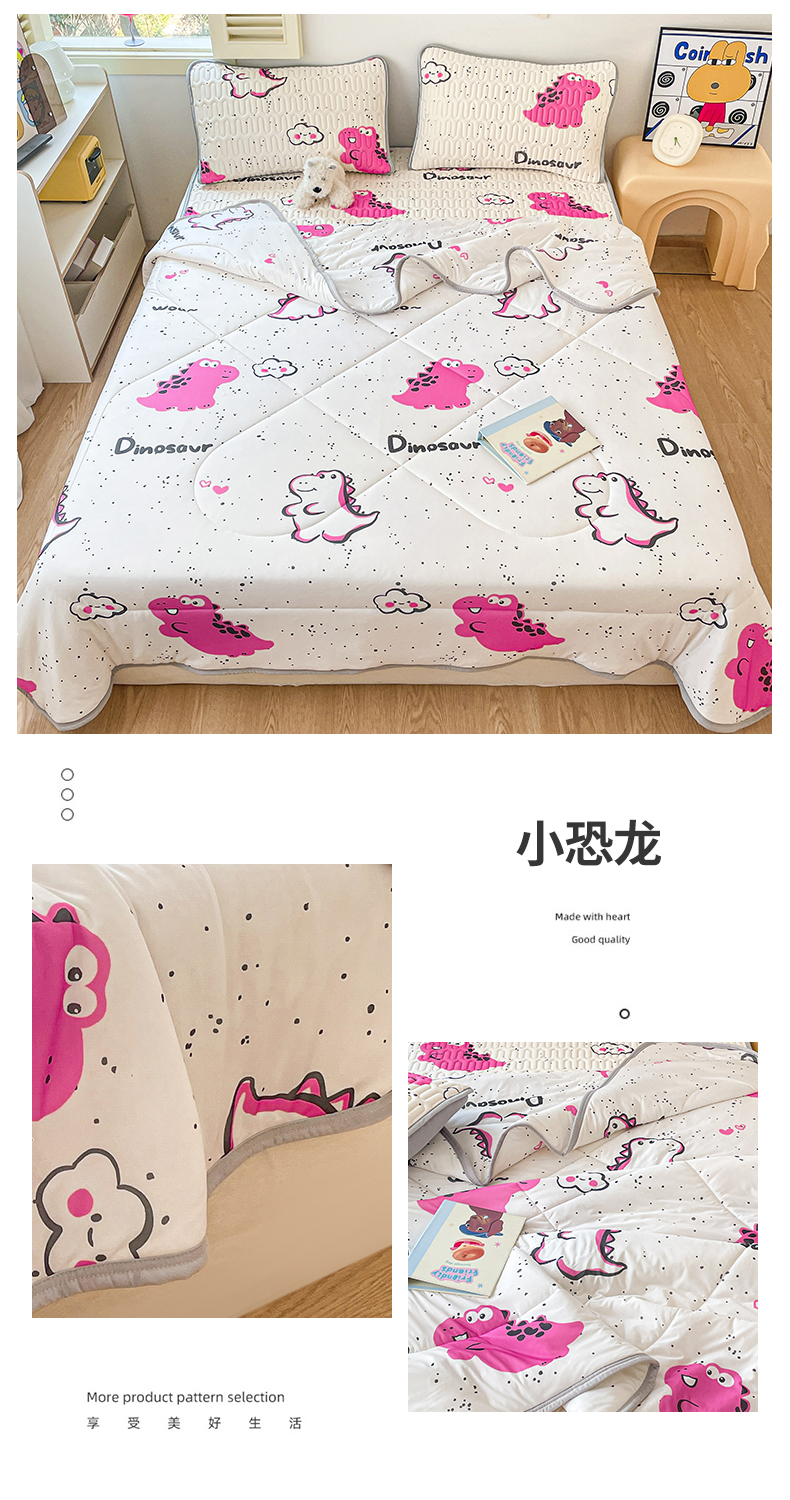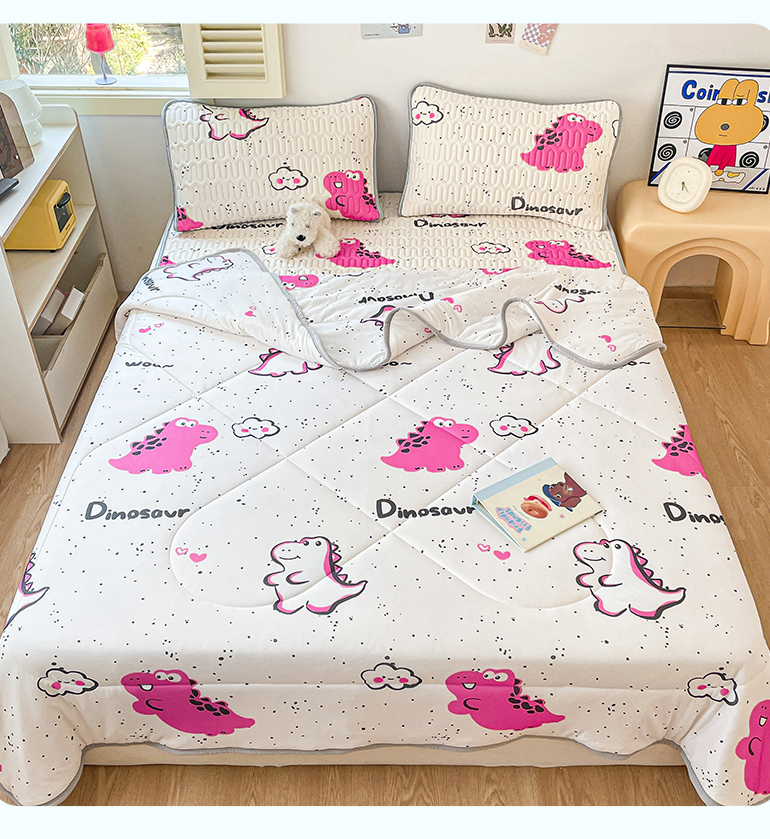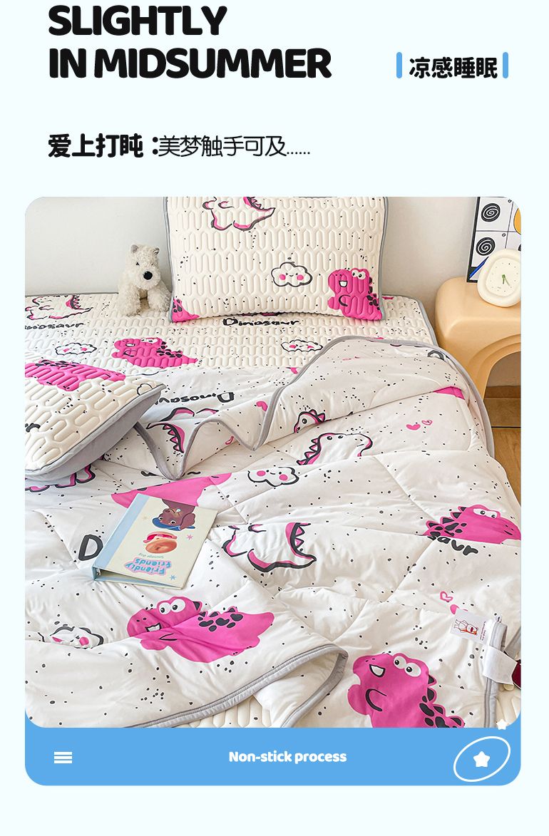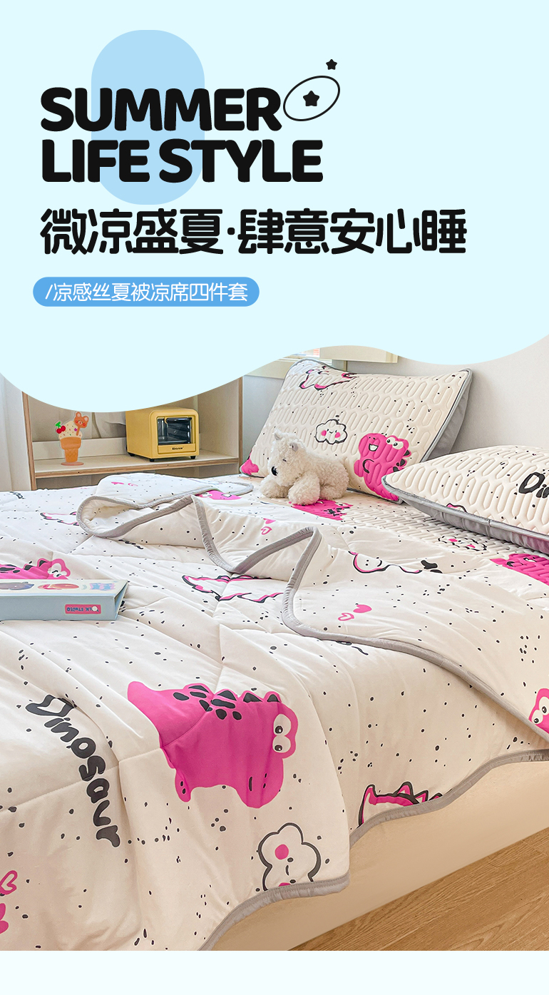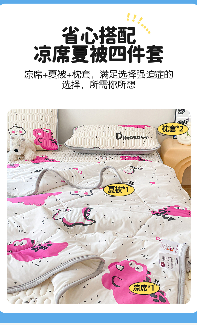 当前位置: 91家纺网 > 商品网购 > 床品套件 > 四件套 > 夏被四件套 > 布卢姆床垫 2025新款A类凉感丝数码印花夏被凉席四件套 小恐龙
