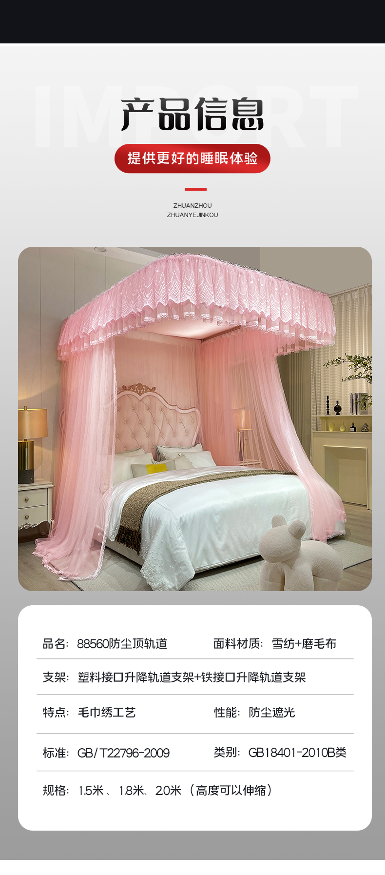 当前位置: 91家纺网 > 商品网购 > 床上用品 > 蚊帐 > 导轨蚊帐 > 夏彩 2024新款88560防尘顶轨道系列蚊帐 88560-虾粉