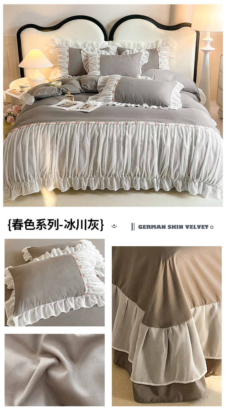 商品名称:芭比蔓家纺 2024新款雪纺磨毛四件套-春色系列 春色系列-冰川灰