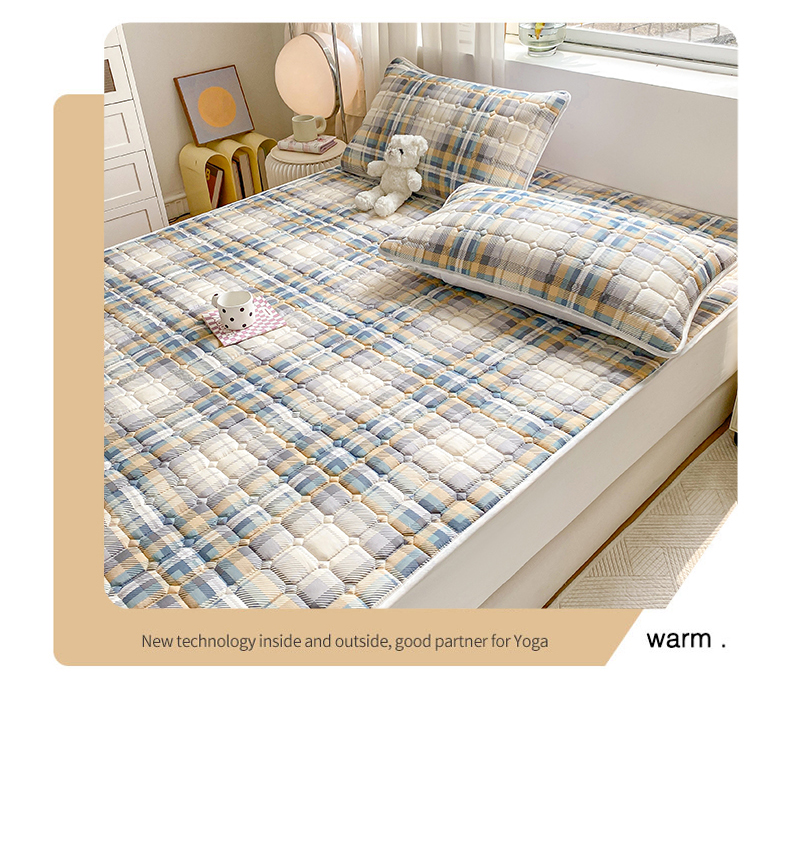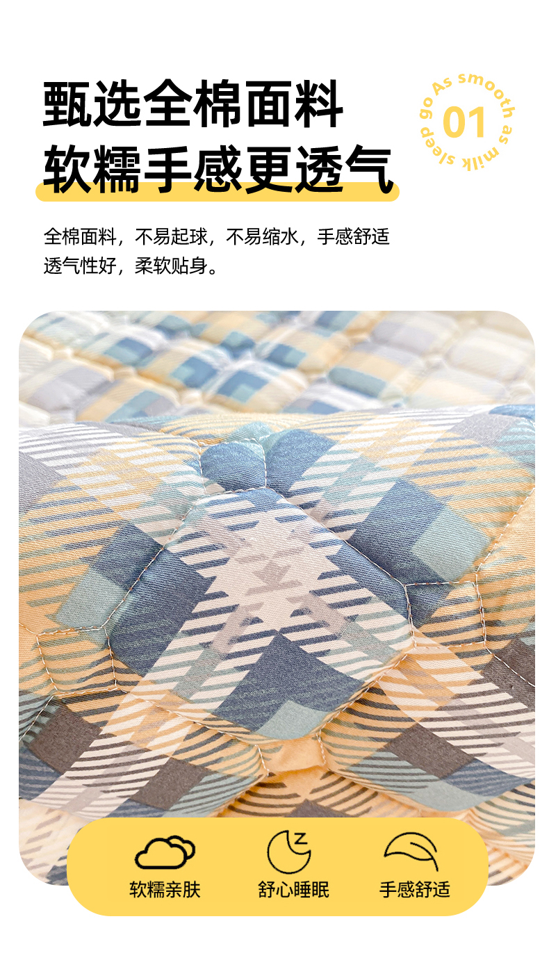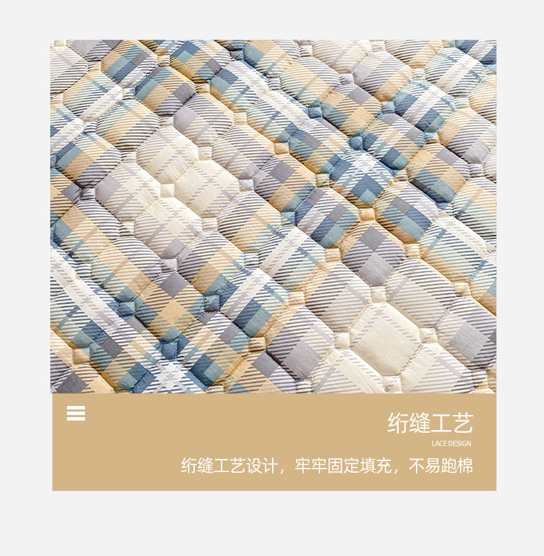 • 91家纺网 家纺一手货源 找家纺 萌飞2024新款全棉新疆棉花夹棉床垫加厚床褥垫被三件套印花 悠闲格调-浅咖