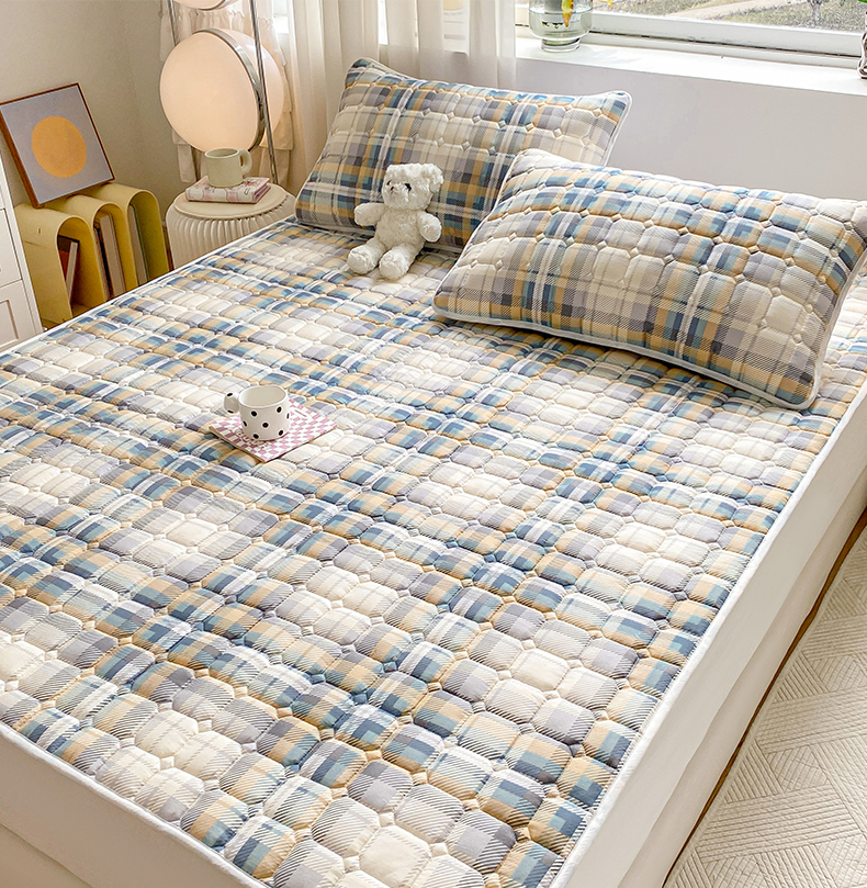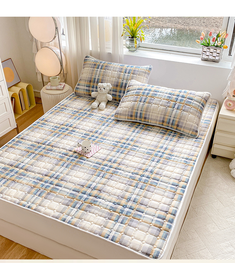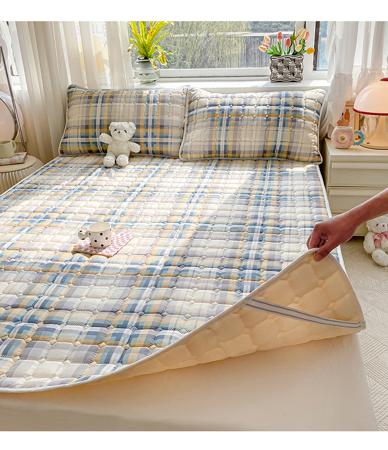 (总)萌飞 2025新款A类全棉纯棉色织抗菌夹棉床笠单床笠单品床笠单件床笠同款枕套一对,高级灰,灰小格,卡其色,蓝小格,莫妮卡-粉,莫妮卡-蓝,奶油白,少女粉