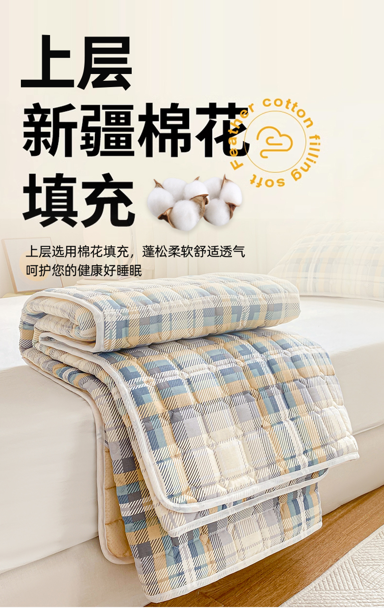 • 91家纺网 家纺一手货源 找家纺 (总)萌飞 2025新款新疆棉花褥子床垫软垫加厚棉絮垫被棉被家用宿舍学生单人床褥垫子,棉花垫-白色