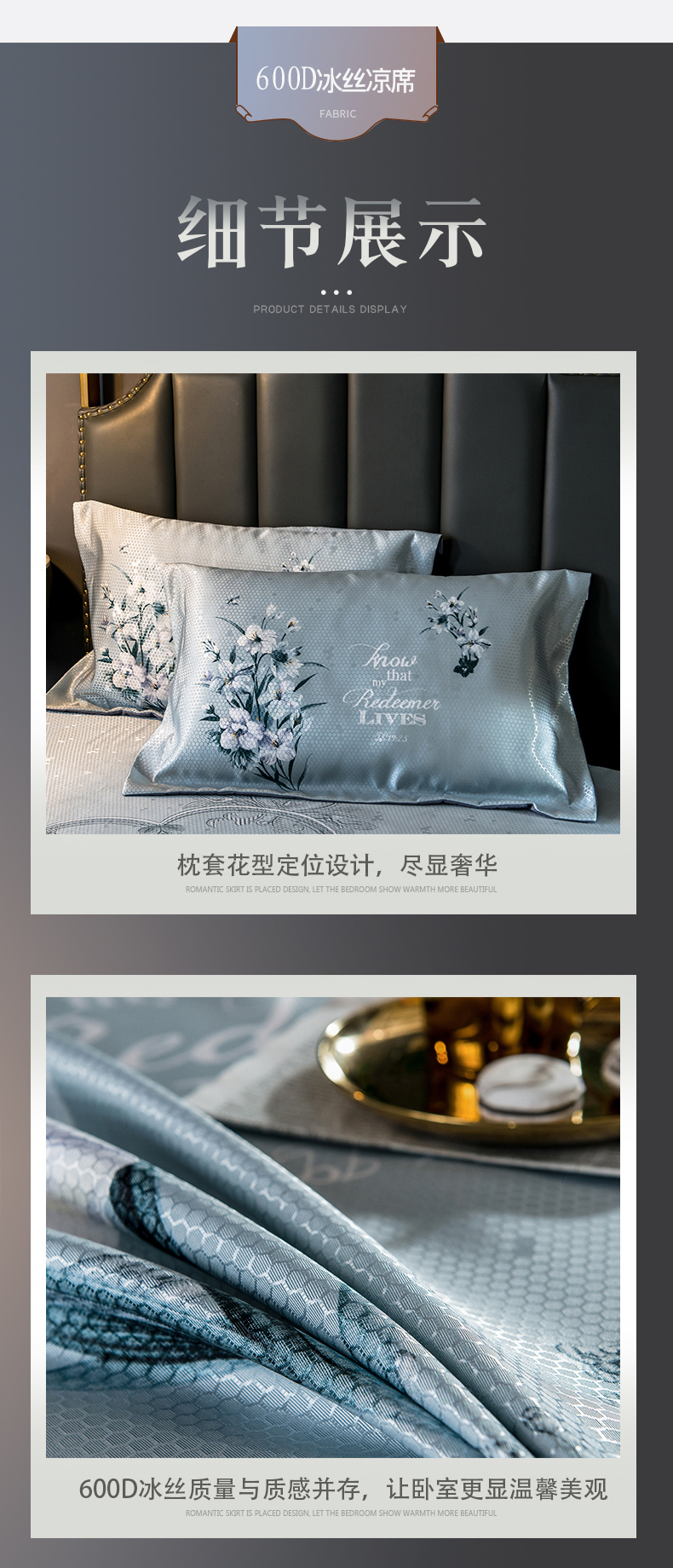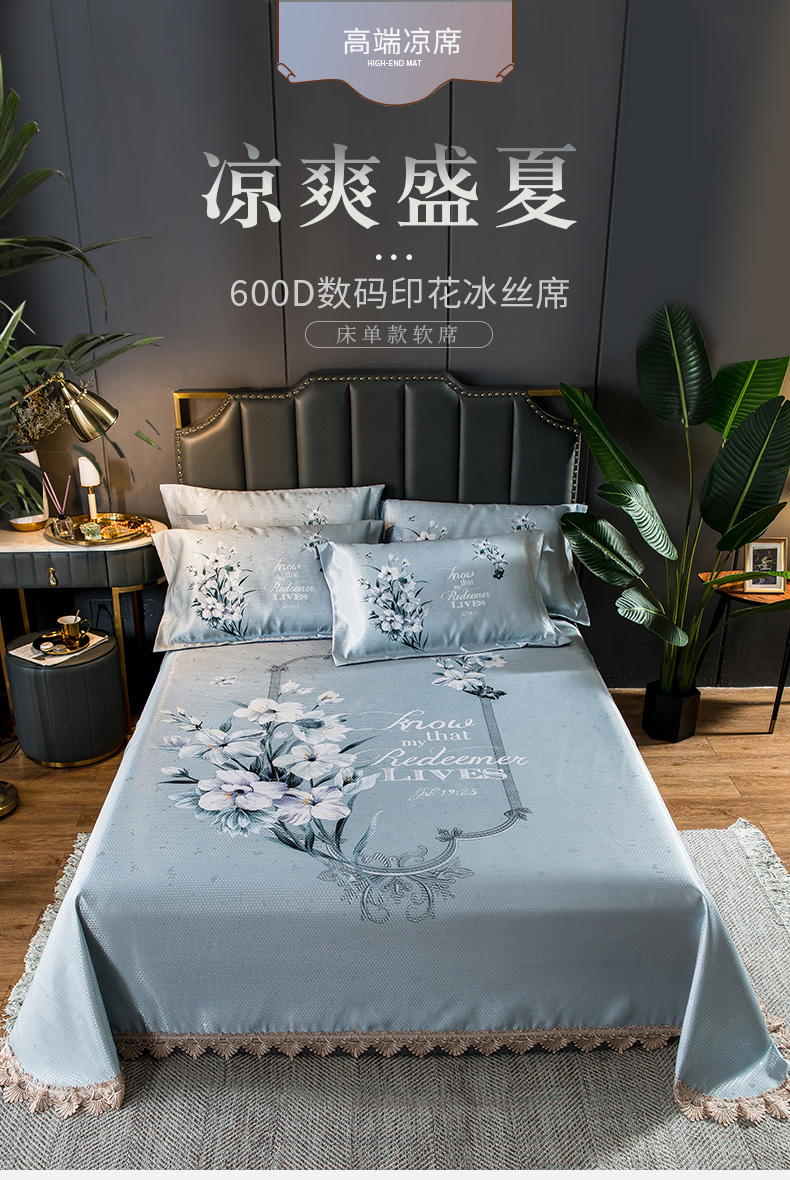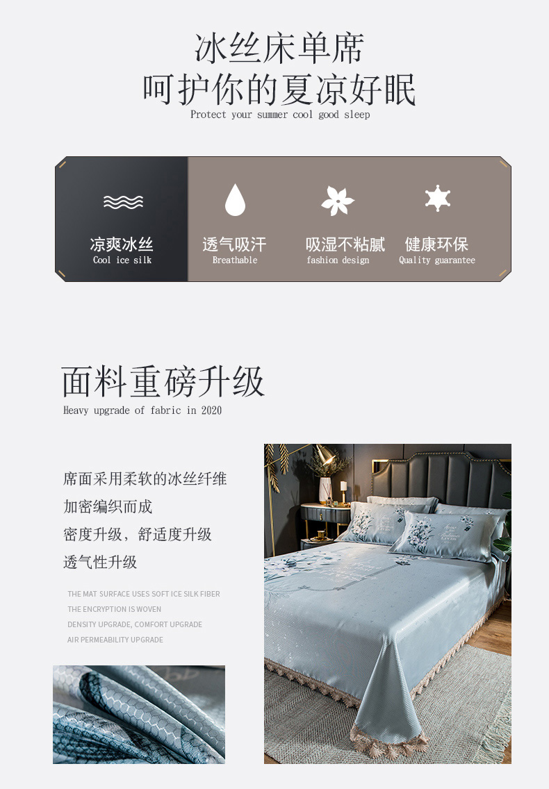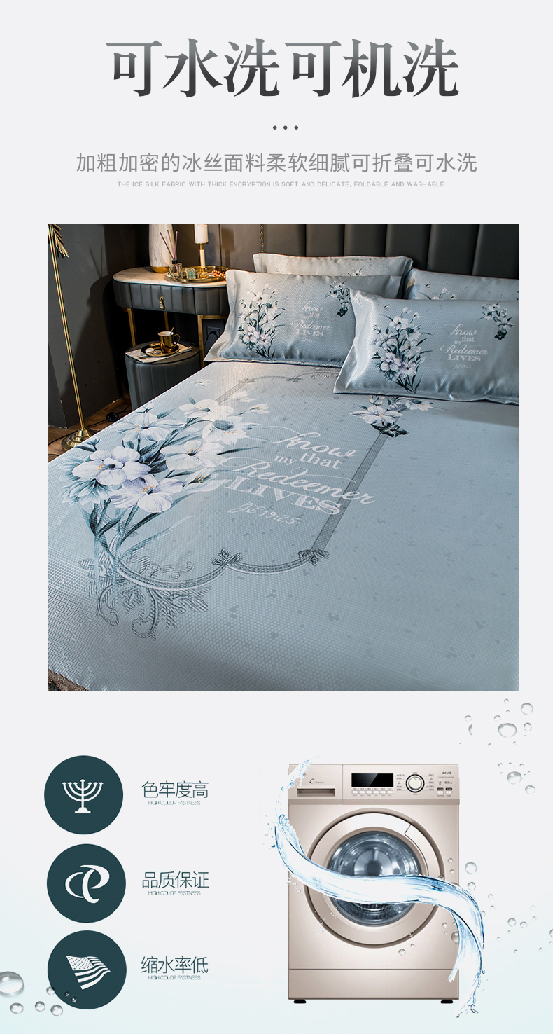 商品名称:其奥家纺 2025新款900d窝蜂冰丝凉席三件套 幽幽花语