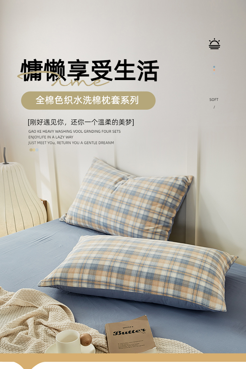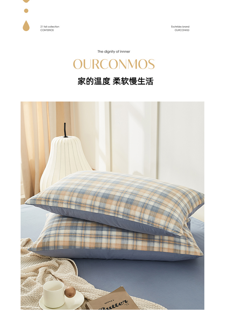 商品名称:凡客家居 2024新款全棉色织水洗棉枕套 贝拉—咖