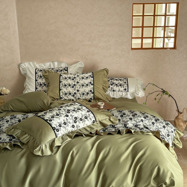 嗨购家纺 2024新款亲肤舒适100支全棉四件套-豆蔻梢头 豆蔻梢头-豆绿