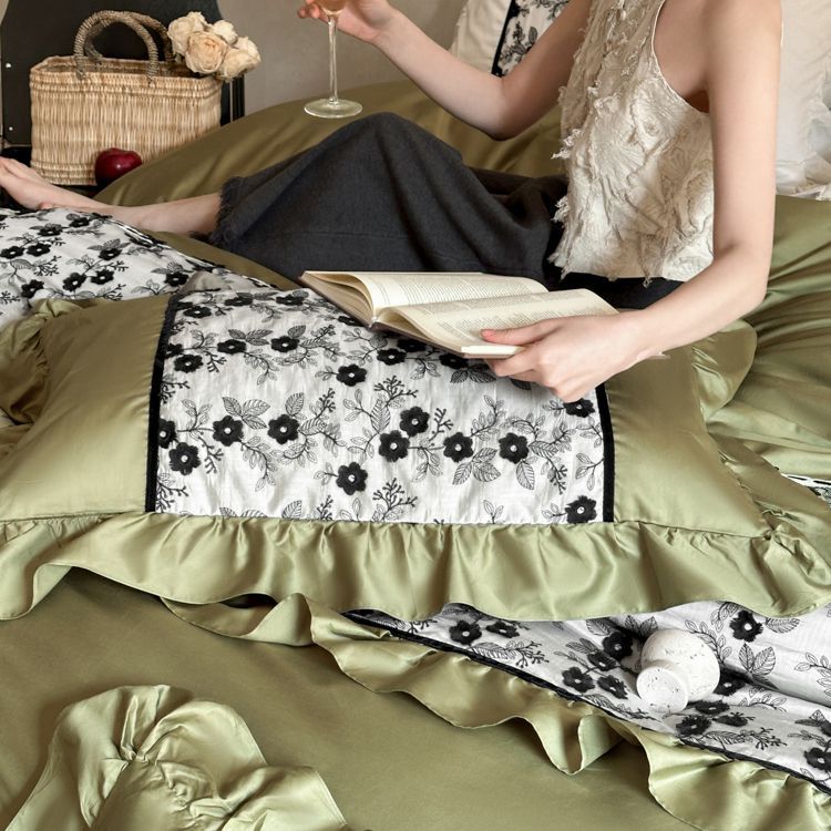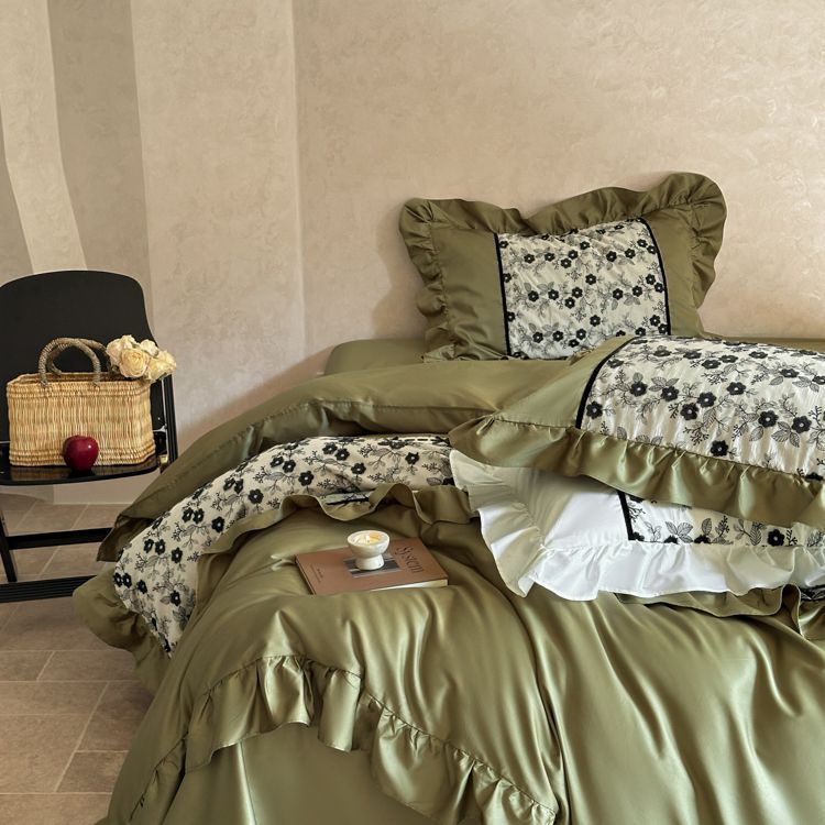(总)嗨购 2022新款40支水洗棉刺绣花边四件套-复古花花,复古花花-粉,复古花花-绿,复古花花-紫