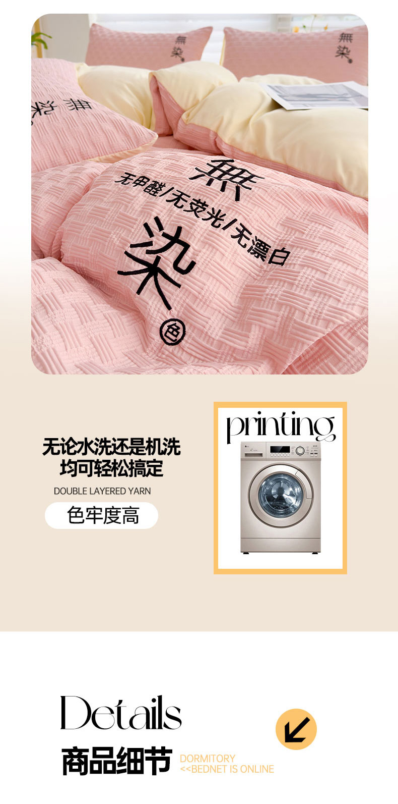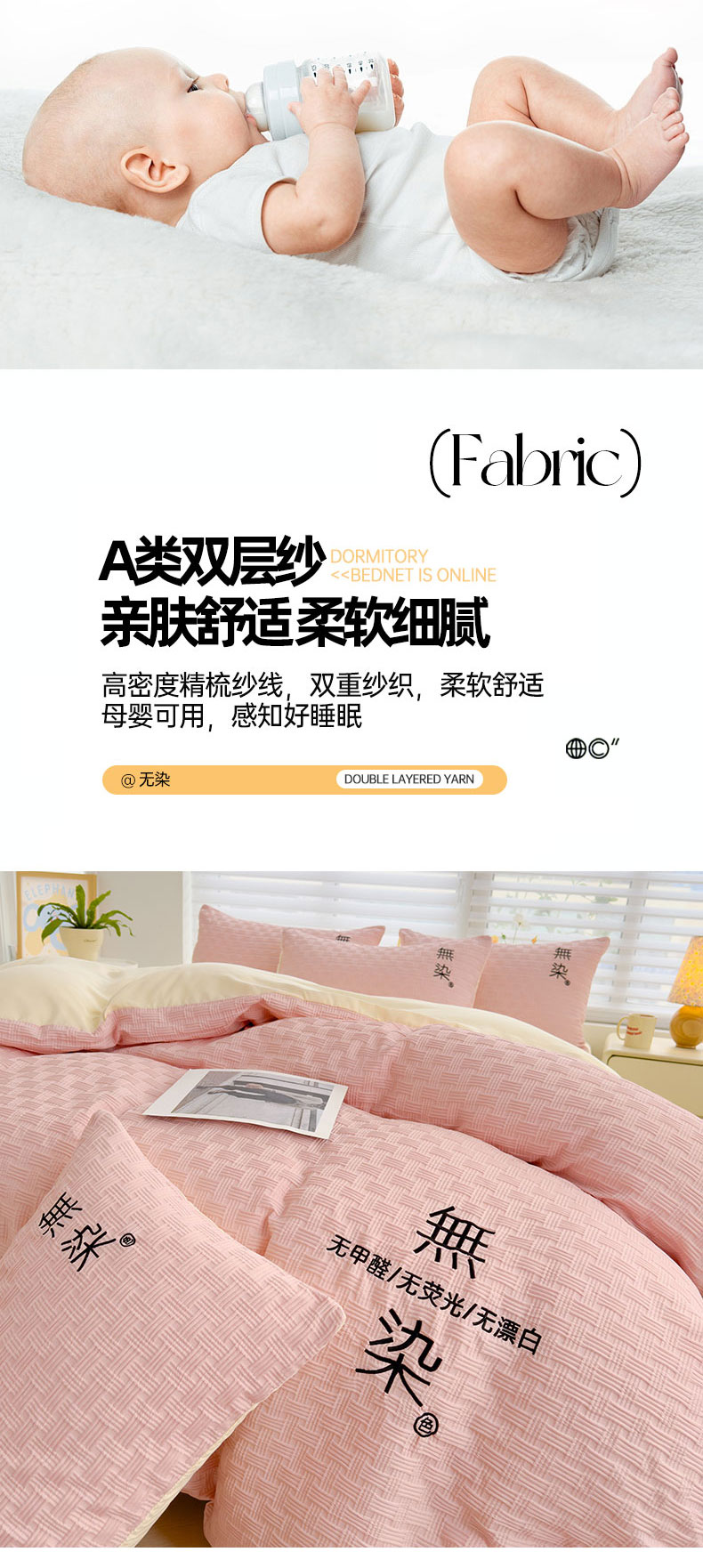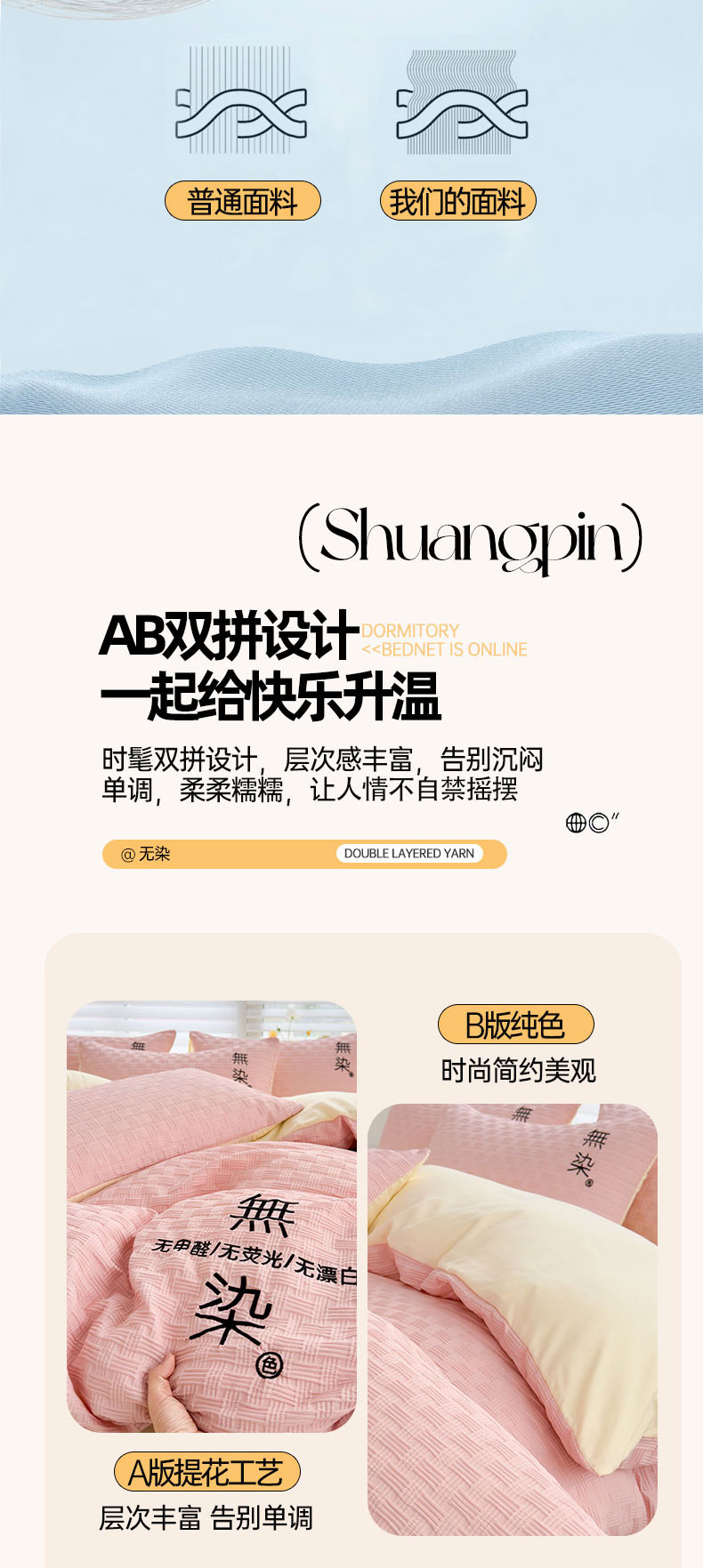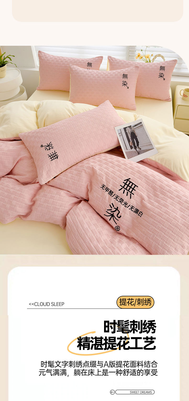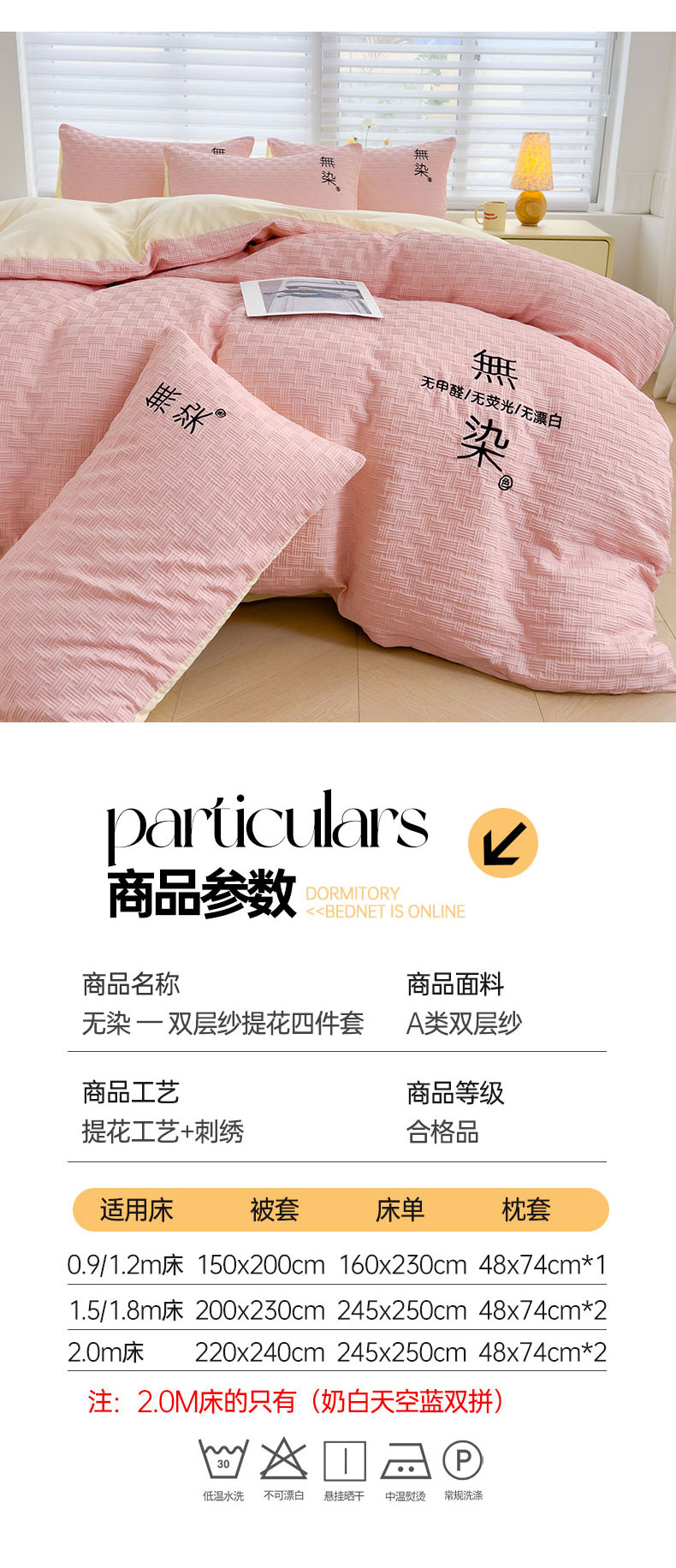 当前位置: 91家纺网 > 商品网购 > 床品套件 > 四件套 > 提花四件套 > 灰鲸 2025新款A类双层纱无染提花四件套 无染-仙粉奶黄双拼