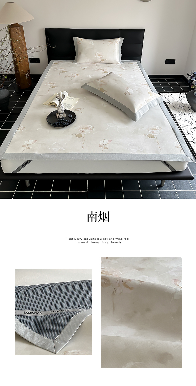 商品名称:三味舒屋 2026新款凉感抗菌防螨印花冰丝养生席手绘系列【花卉】床席款 南烟