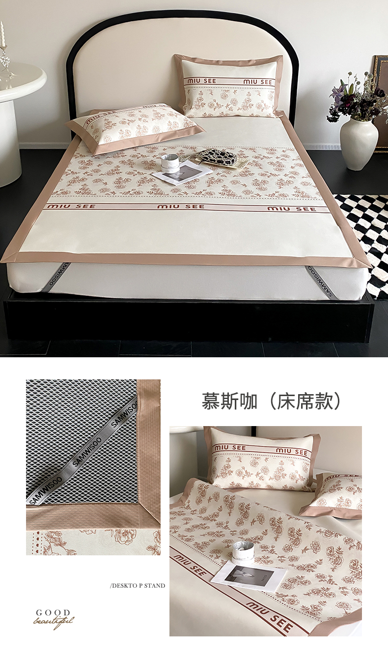 商品名称:三味舒屋 三味舒屋 2025新款凉感抗菌防螨印花冰丝养生席手绘系列床席款【简欧】 慕斯咖