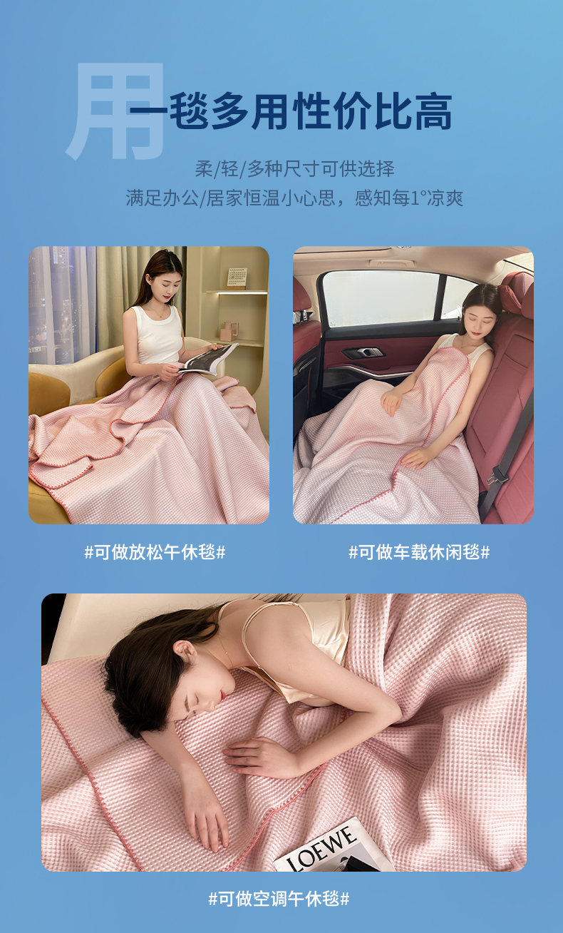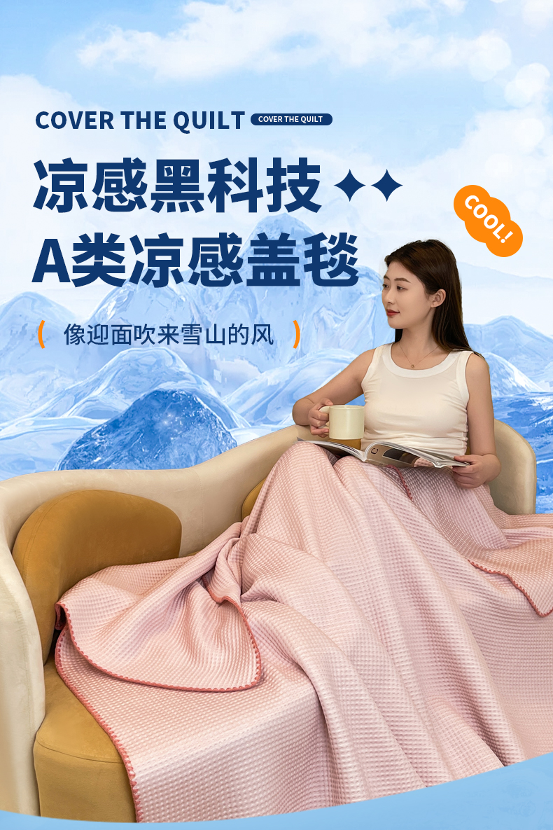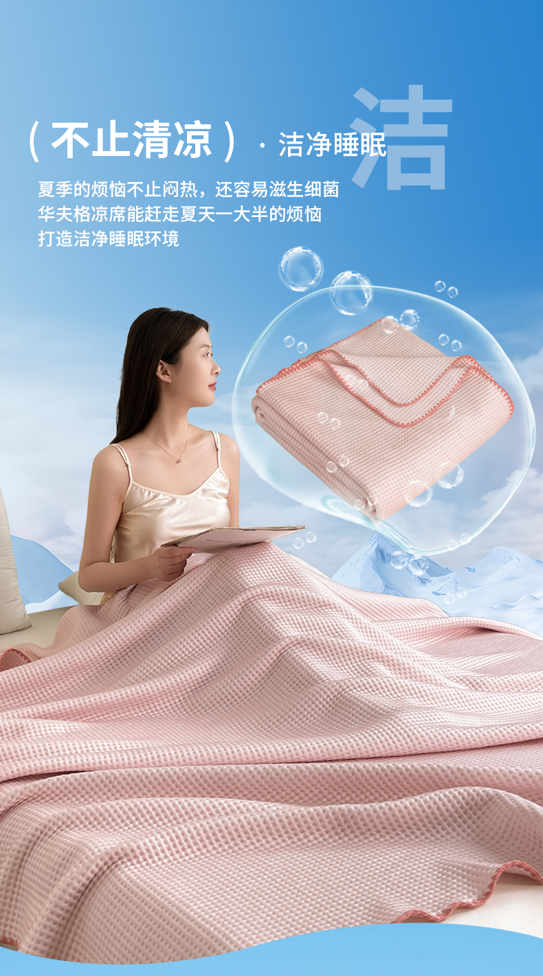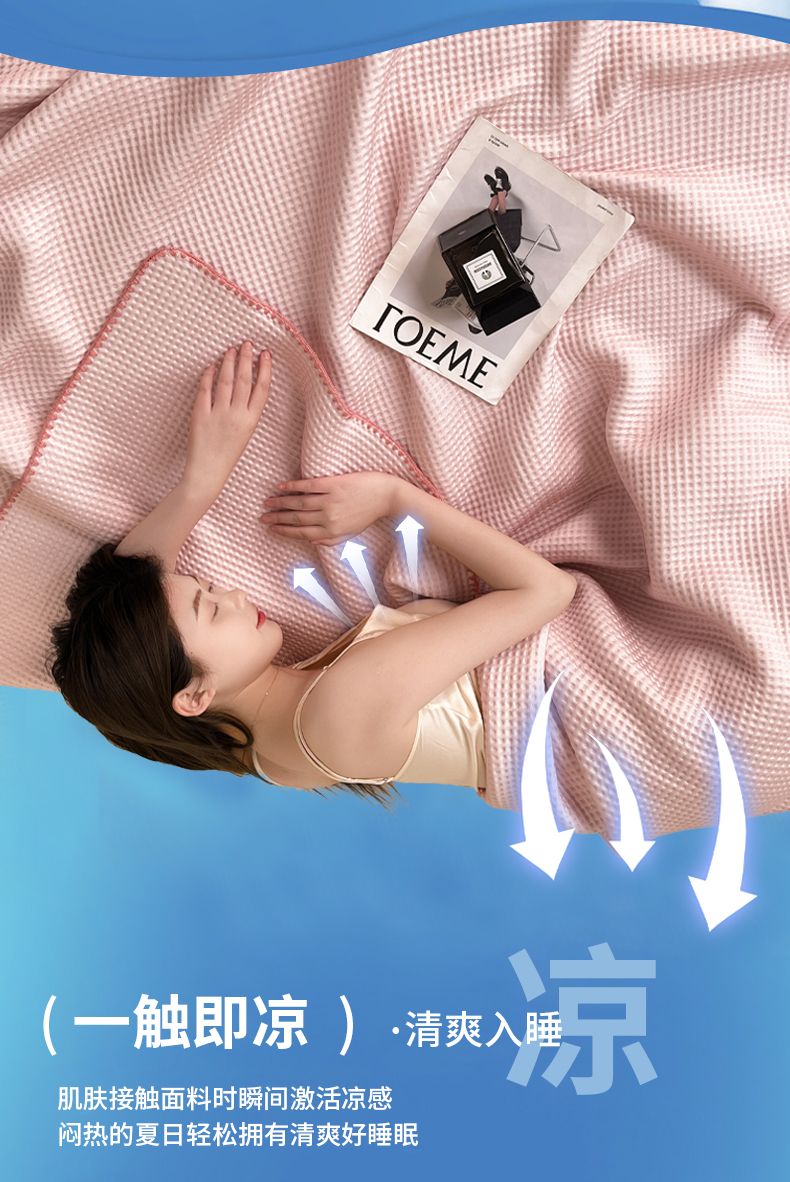 (总)伊被源 2024新款A类华夫格凉感丝盖毯点点夏被,云川绿,元气粉,天空蓝,气质灰
