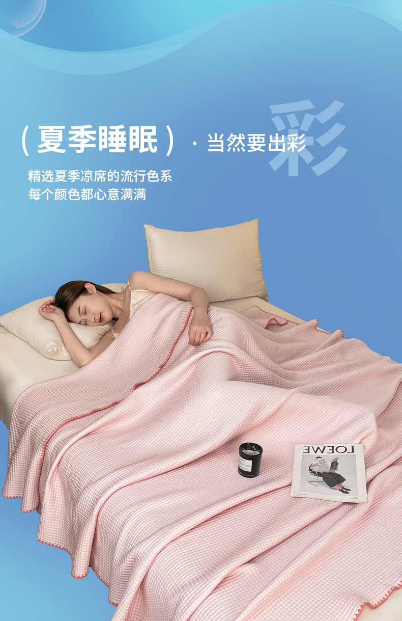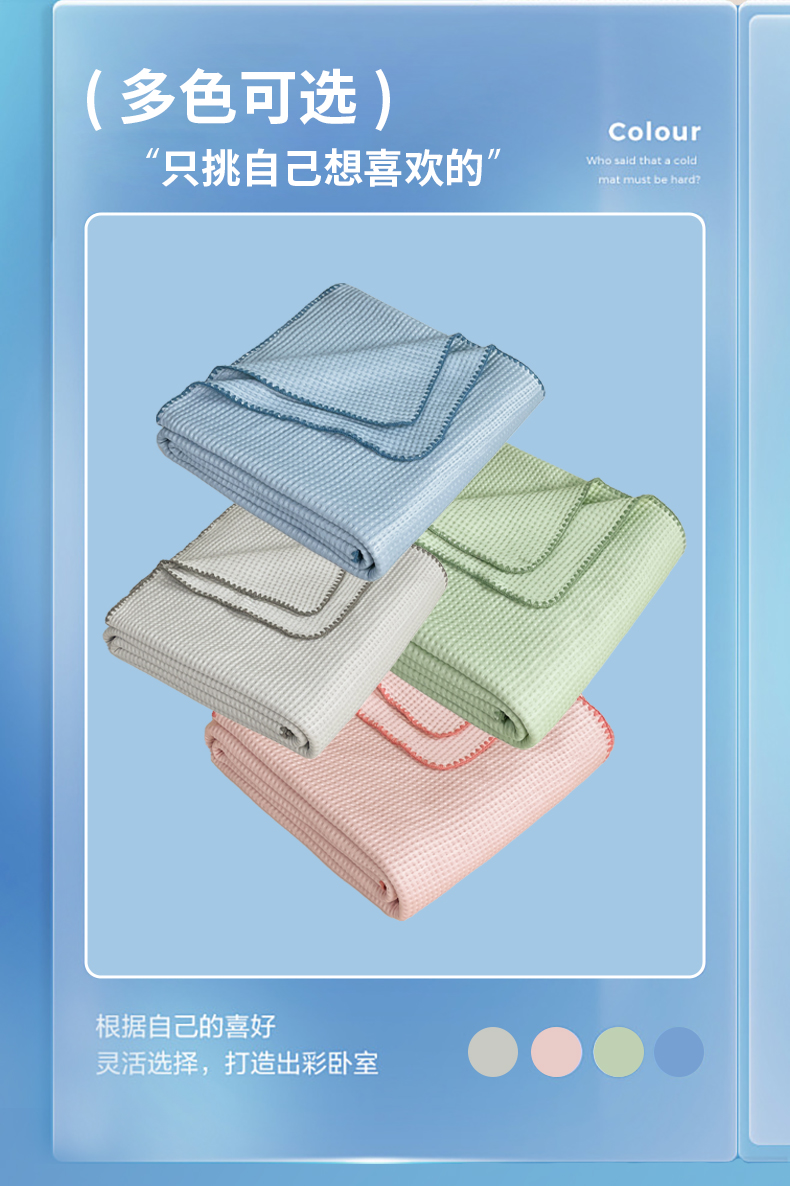 (总)伊被源 2024新款亲肤舒适品味生活凉感席,宝石蓝,肌理灰,梦境黄,清透绿,水晶绿