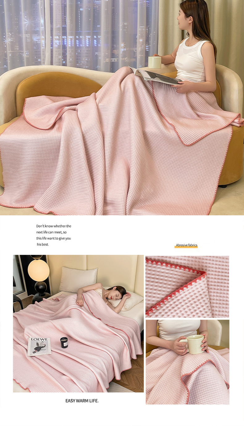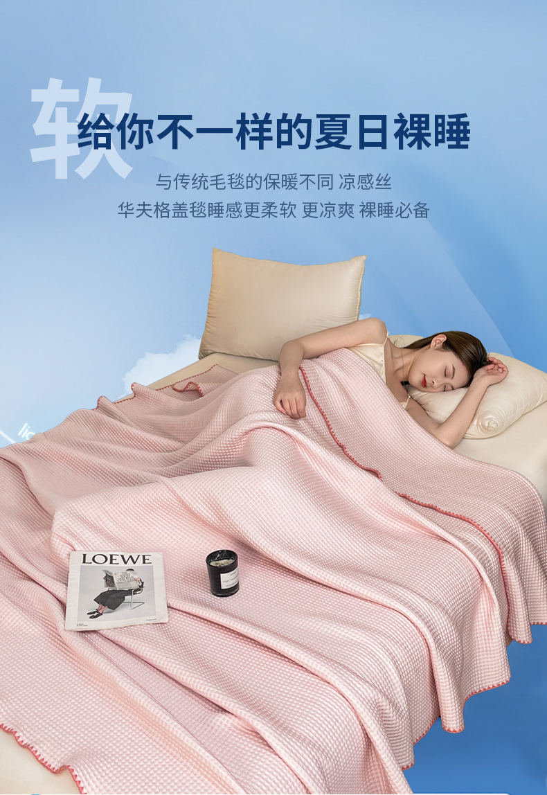 伊被源 2024新款A类华夫格凉感丝盖毯点点夏被 元气粉
