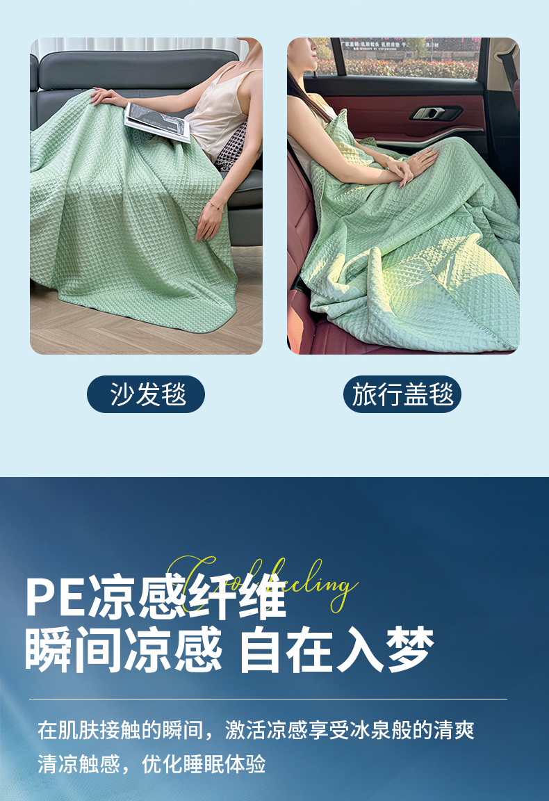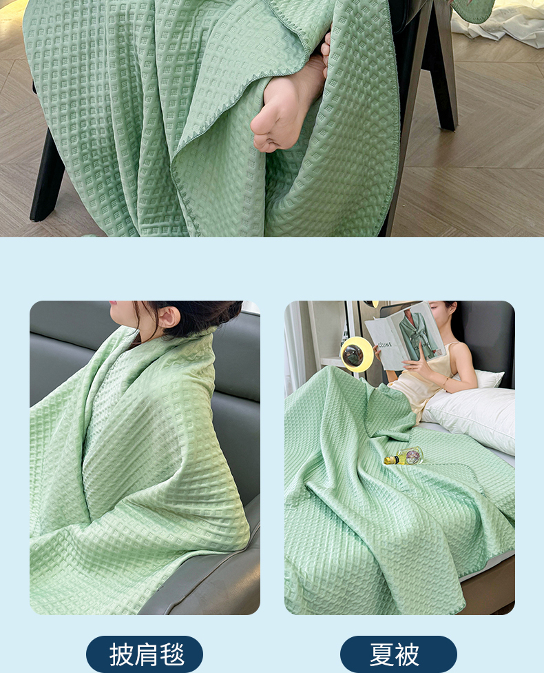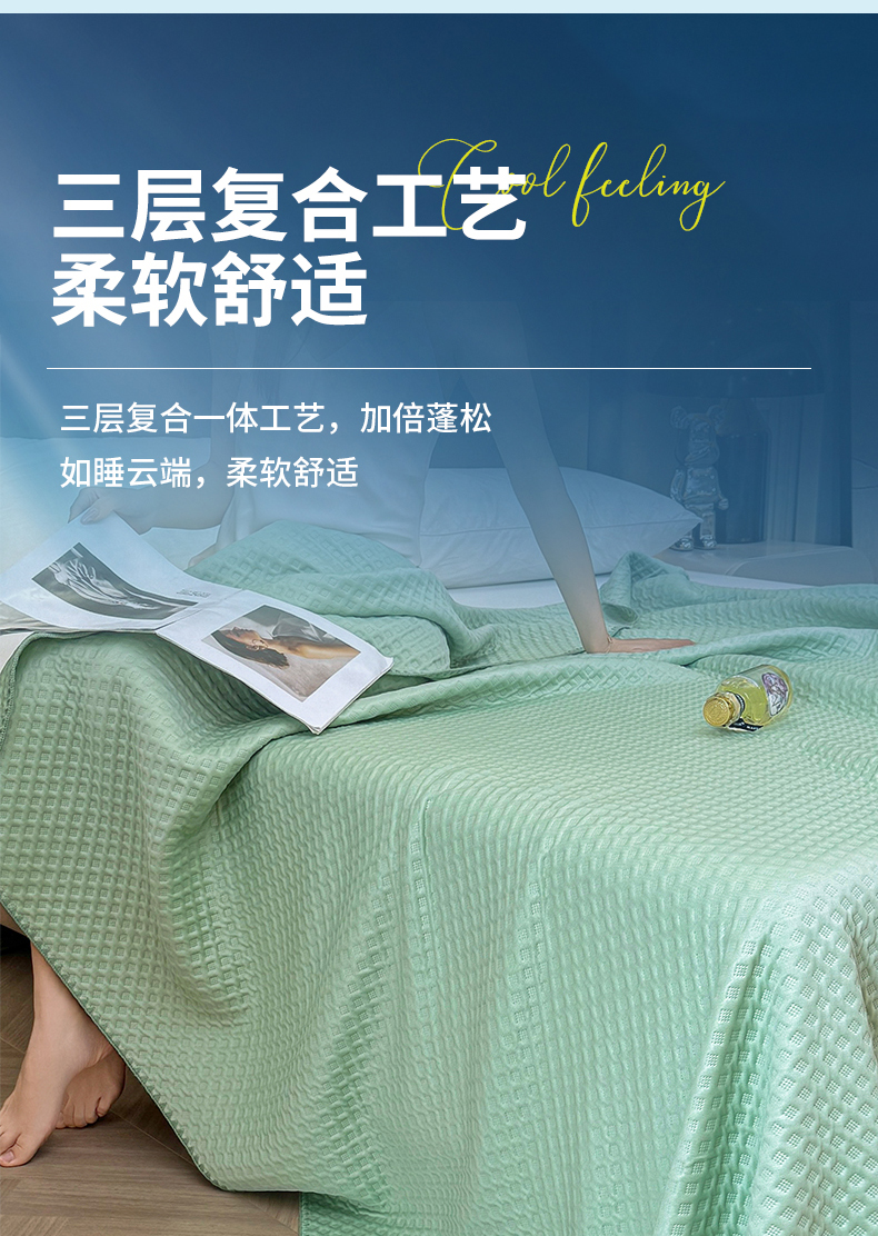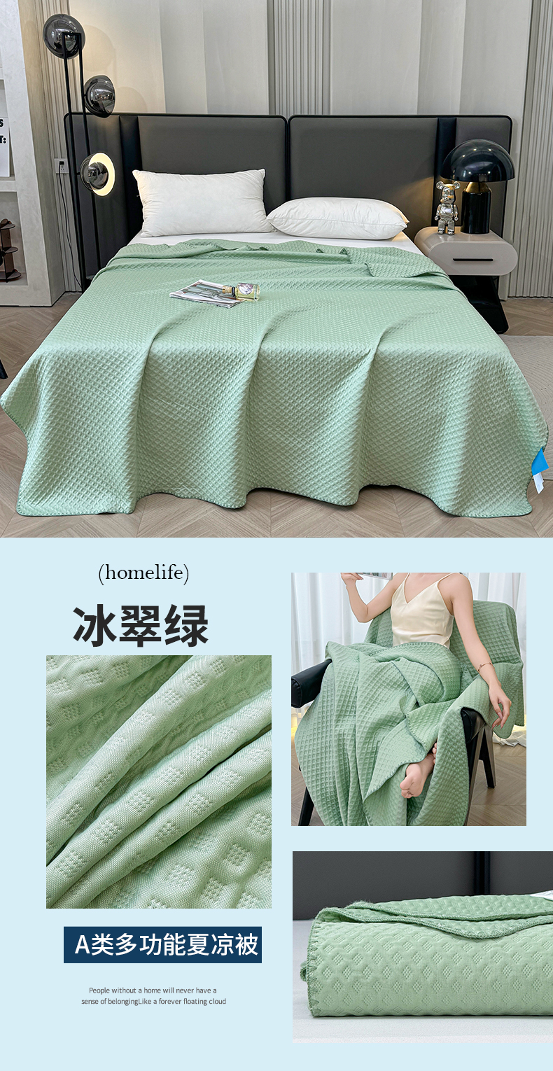 (总)伊被源 2024新款A类华夫格凉感丝盖毯点点夏被,云川绿,元气粉,天空蓝,气质灰
