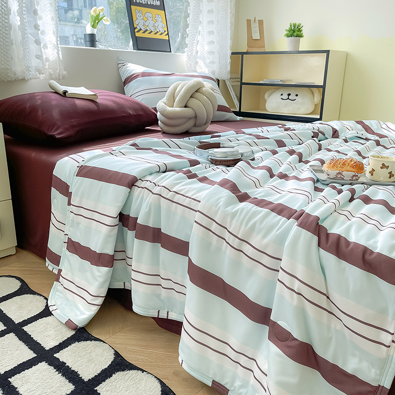 Mr.pig猪先生水洗棉 2024新款5A抗菌针织棉印花夏被 绿咖条