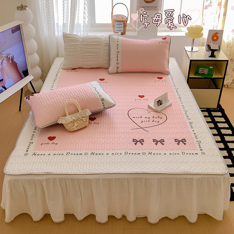 顾里家纺 顾里家纺 2024新款凉感丝数码印花INS风大版凉席三件套 字母爱心