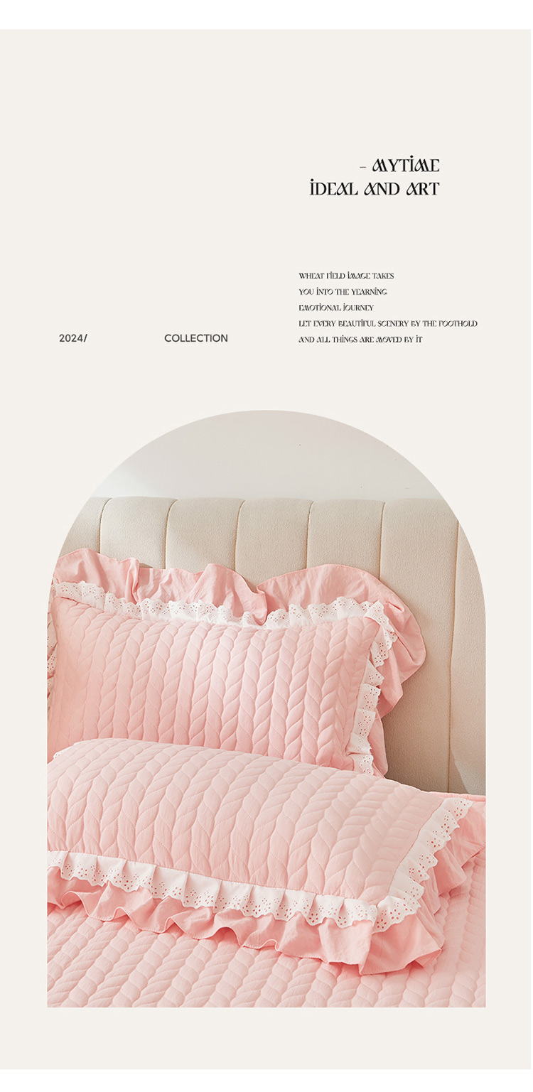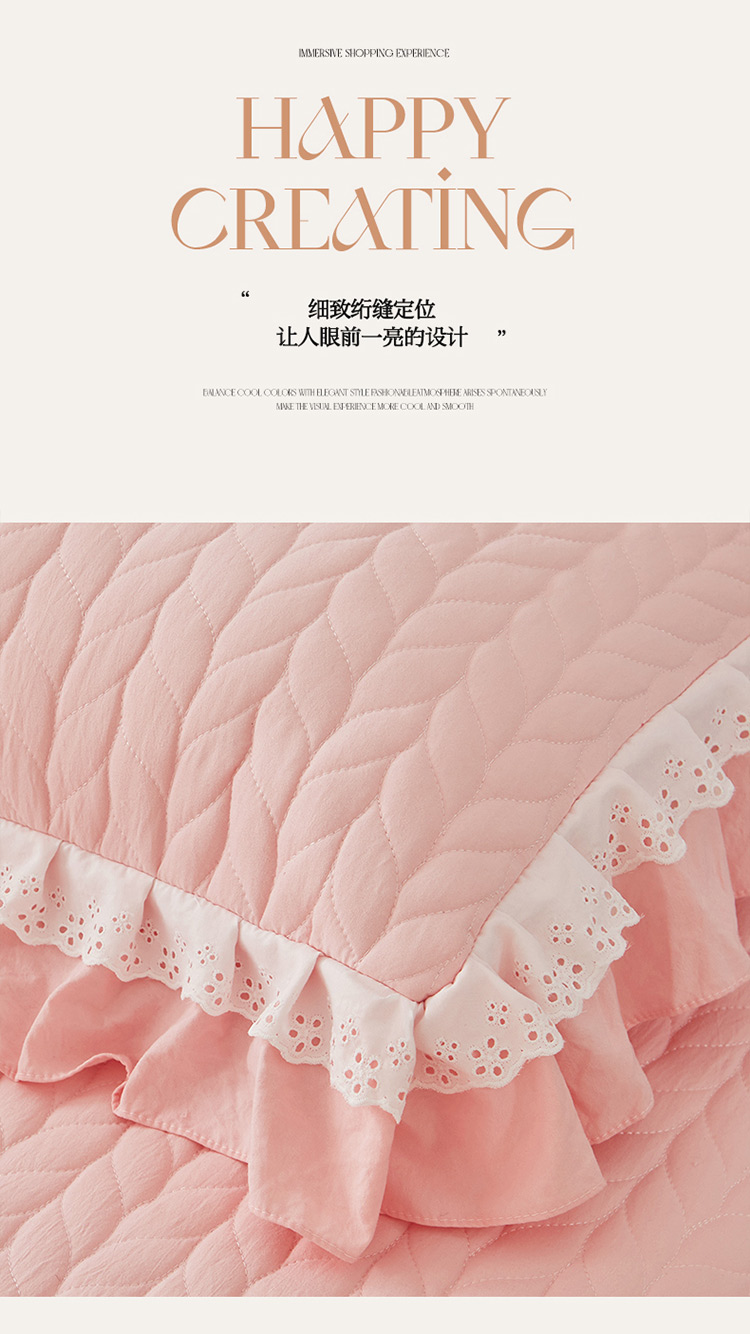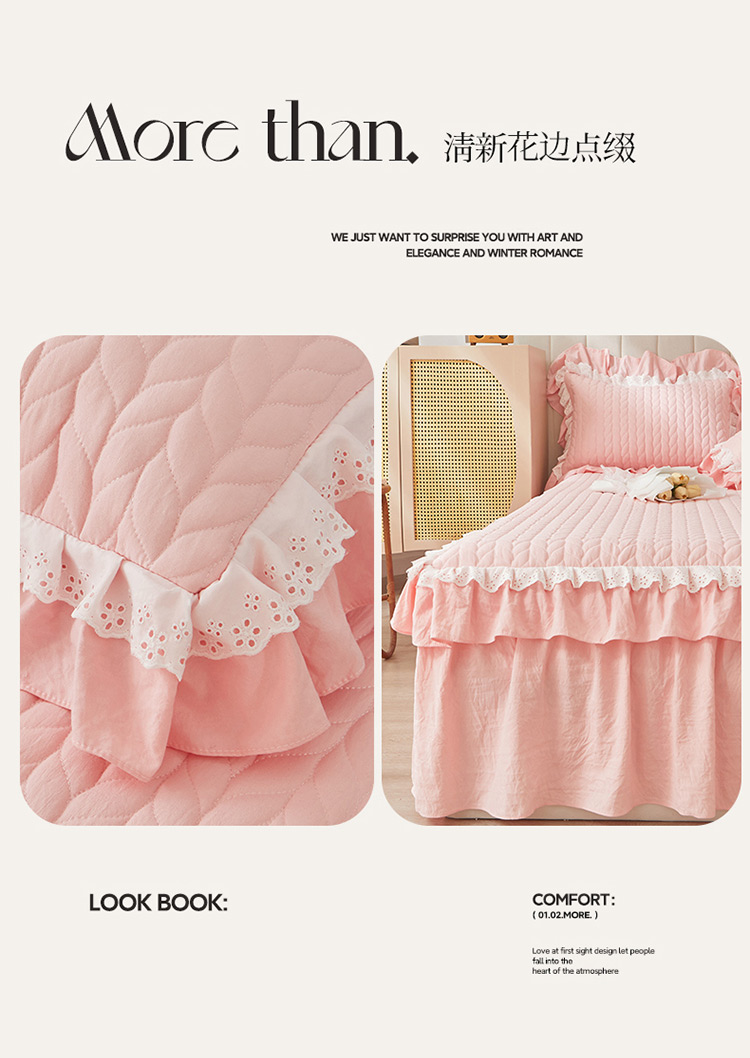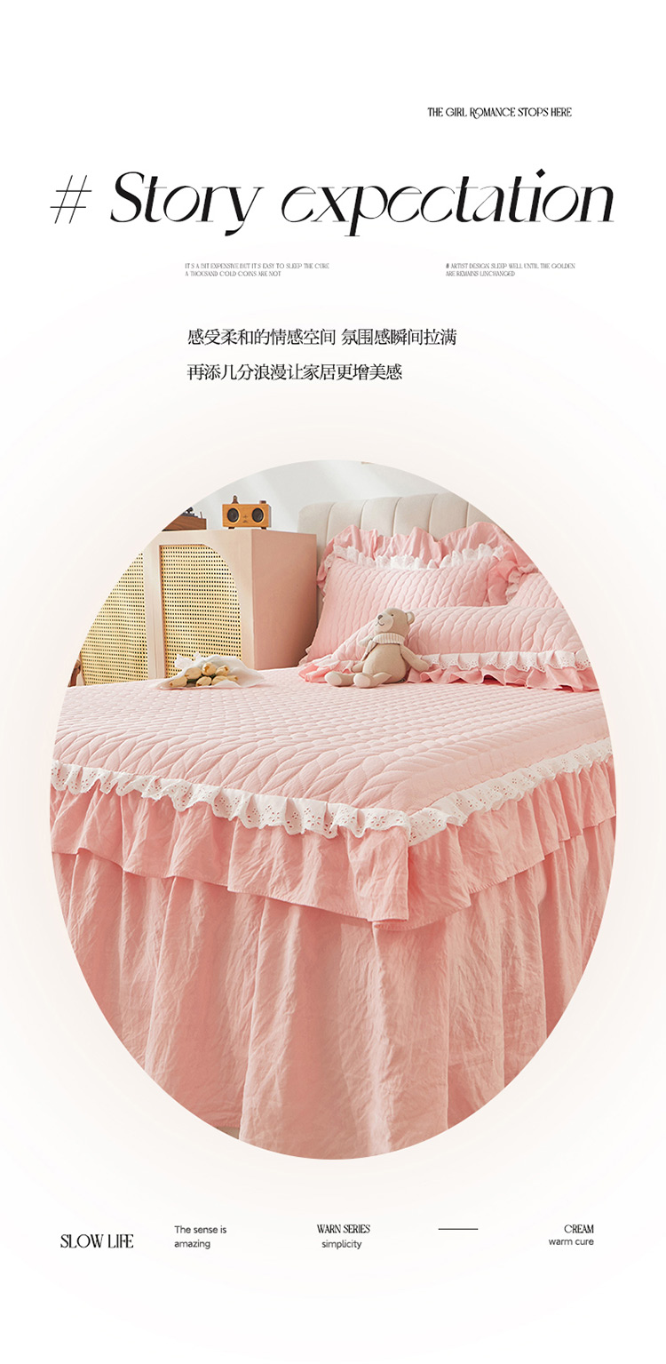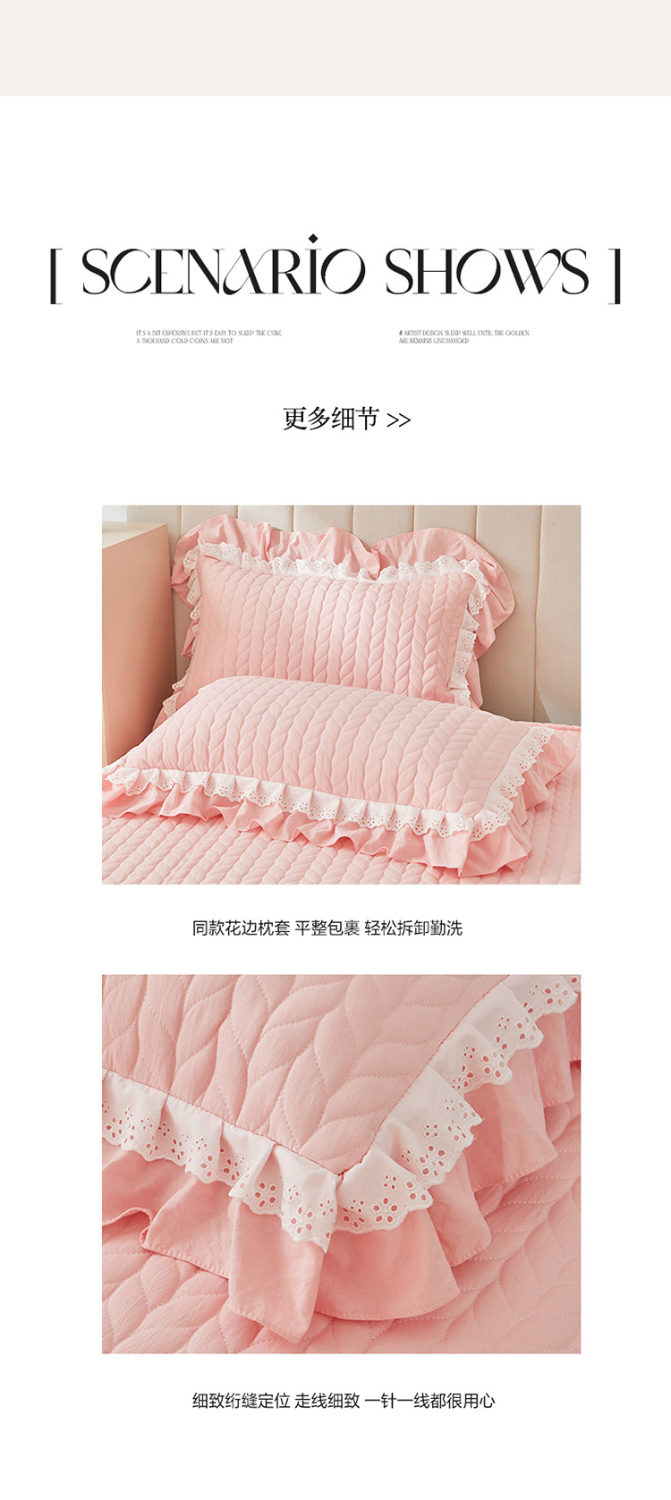 2025ins秘密花园镂空泡泡玛卡龙色系水洗棉加厚床裙 樱花粉